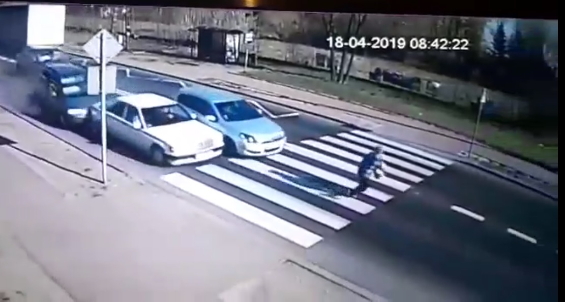 Dotarliśmy do filmu na którym widać całe zdarzenie. Kobieta podchodzi do przejścia dla pieszych i zatrzymuje się. Zatrzymują się także kolejne samochody by przepuścić przechodnia. Niestety jeden z pojazdów nie zdołał wyhamować i uderza w dwa poprzedzające go samochody. Jedno z nich z impetem wpada na pasy i niemal przejeżdża przechodzącą przez jezdnię kobietę.