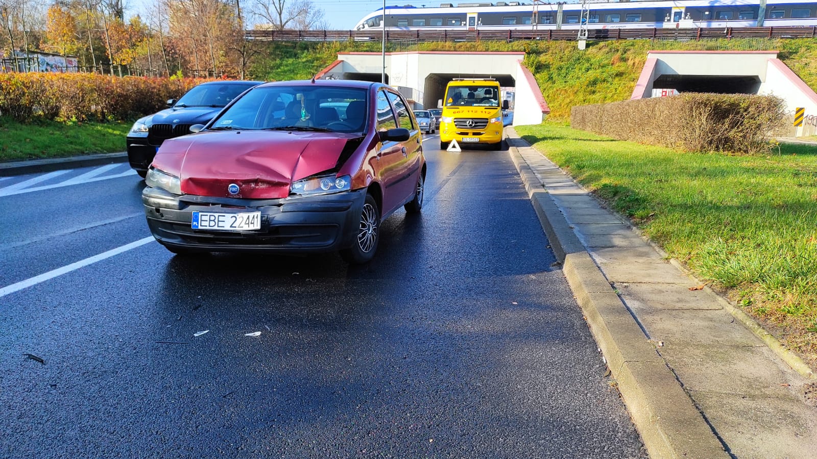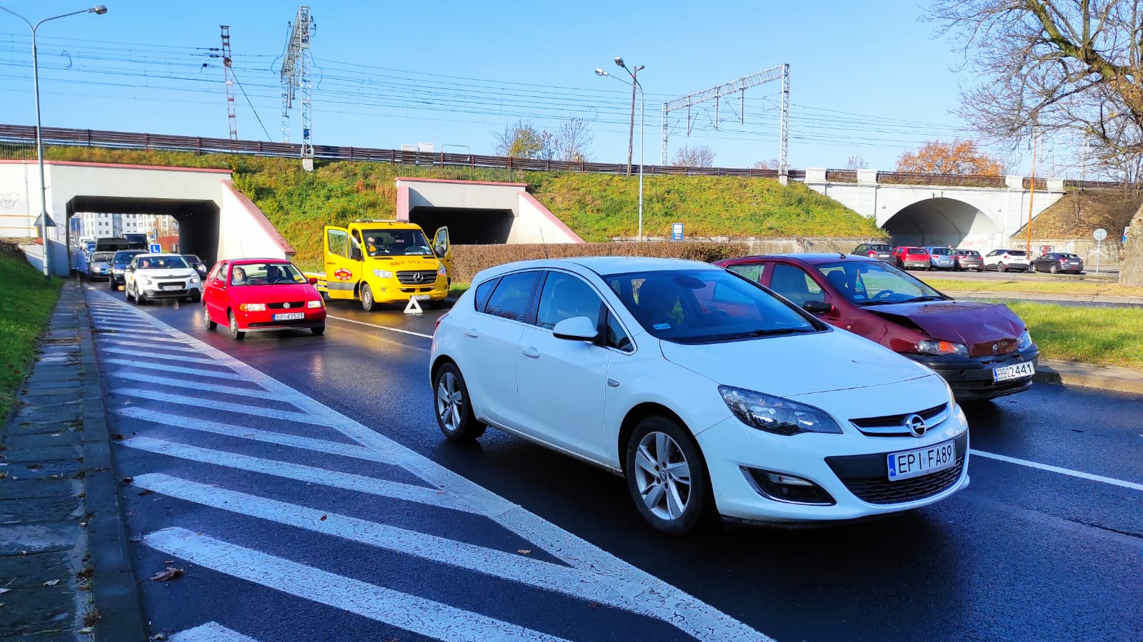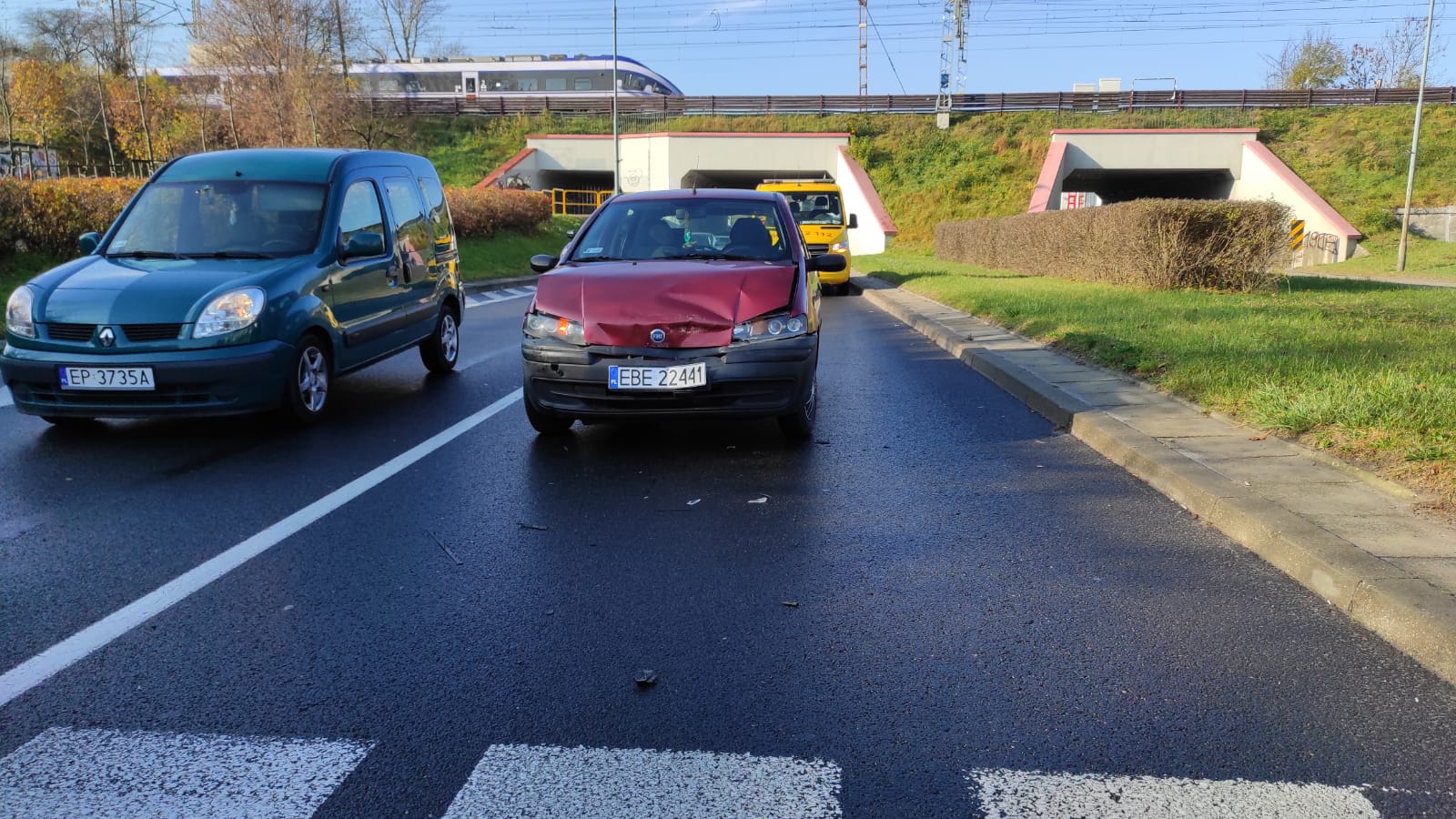 Do kolizji doszło w środę (3.11) około 9:40 ba pasie w kierunku ulicy Sienkiewicza. . W zatrzymującego się przed przejściem dla pieszych mercedesa, uderzył kierowca fiata. Nikomu nic się nie stało.