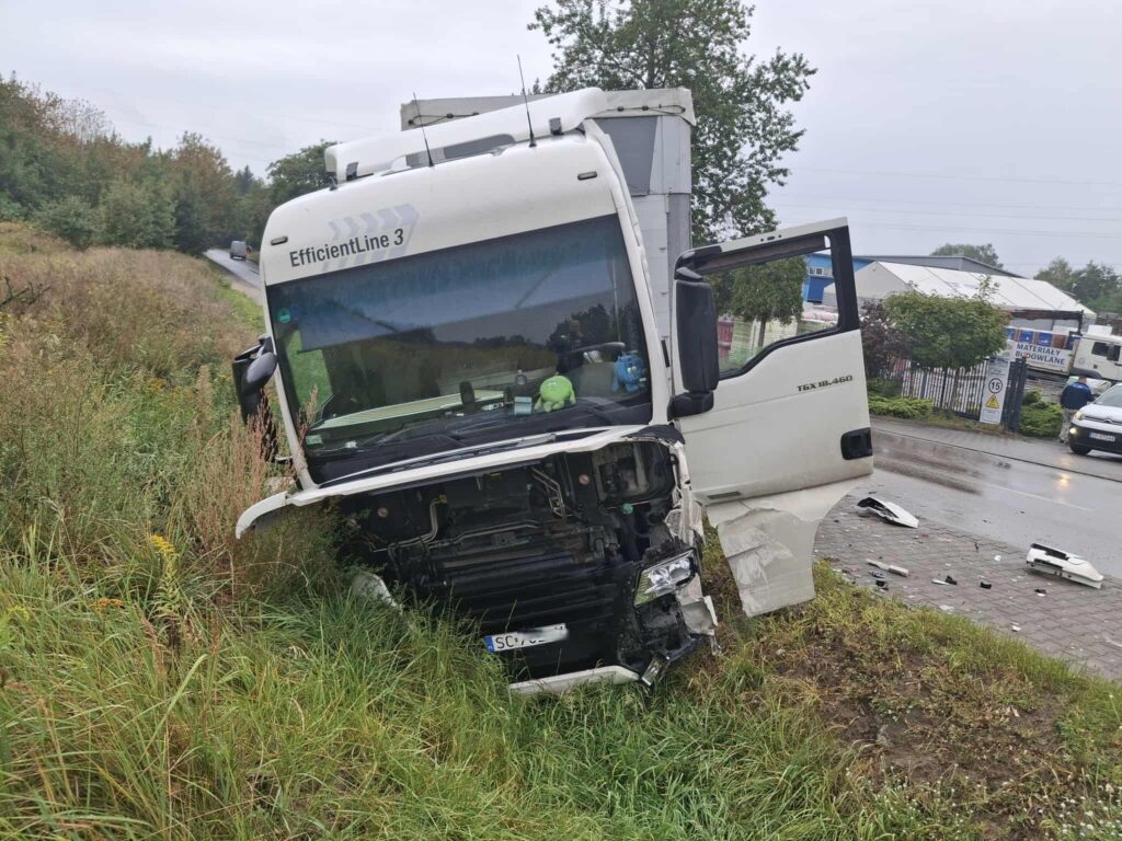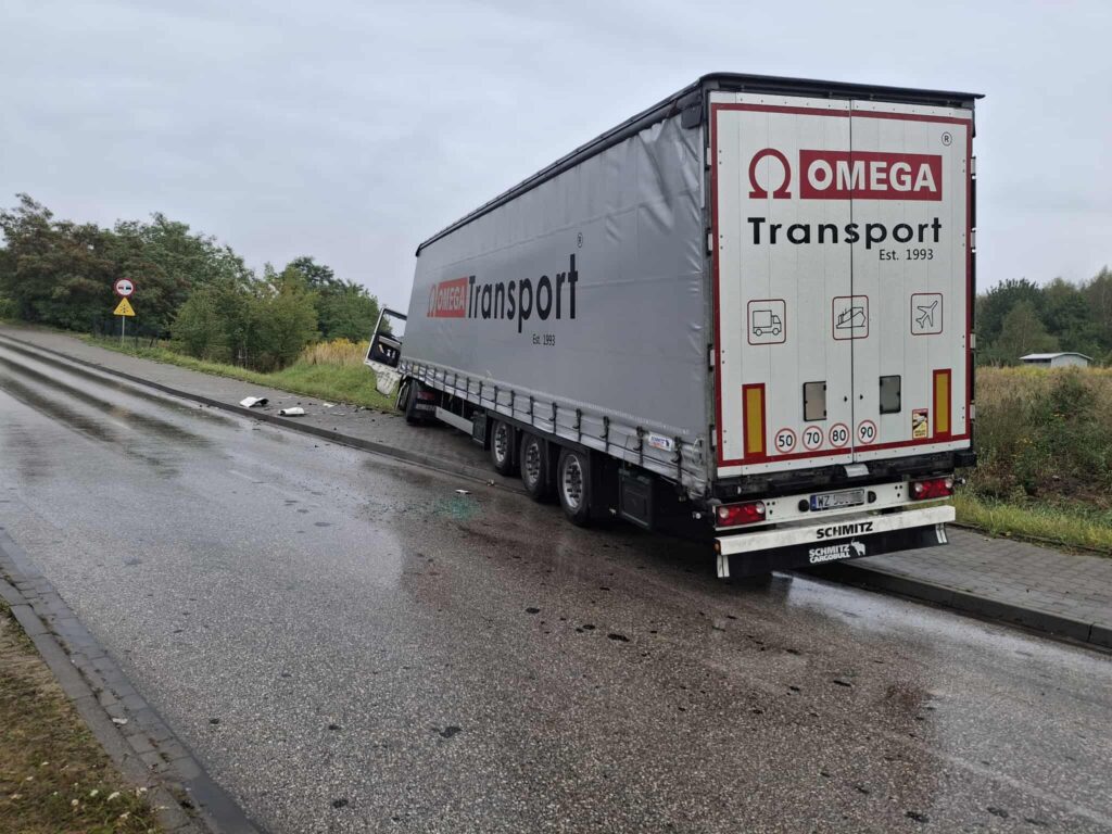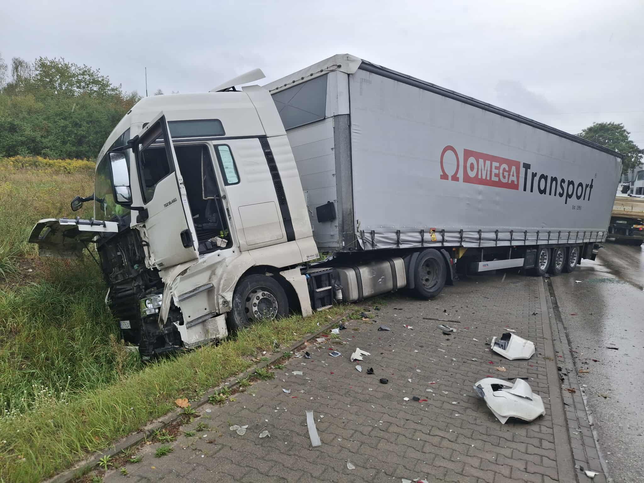 Policjanci ustalą dokładny przebieg zdarzenia, jednak z naszych nieoficjalnych informacji wynika, ze kierująca samochodem osobowym zwolniła, by skręcić do składu budowlanego, w tym momencie uderzył w nią kierujący ciężarówką. W wyniku kraksy, kierowca TIRa stracił panowanie nad pojazdem, odbił; w prawi i wpadł do rowu. Na szczęście nikomu nic się nie stało, a ruch w tym miejscu jest utrudniony.