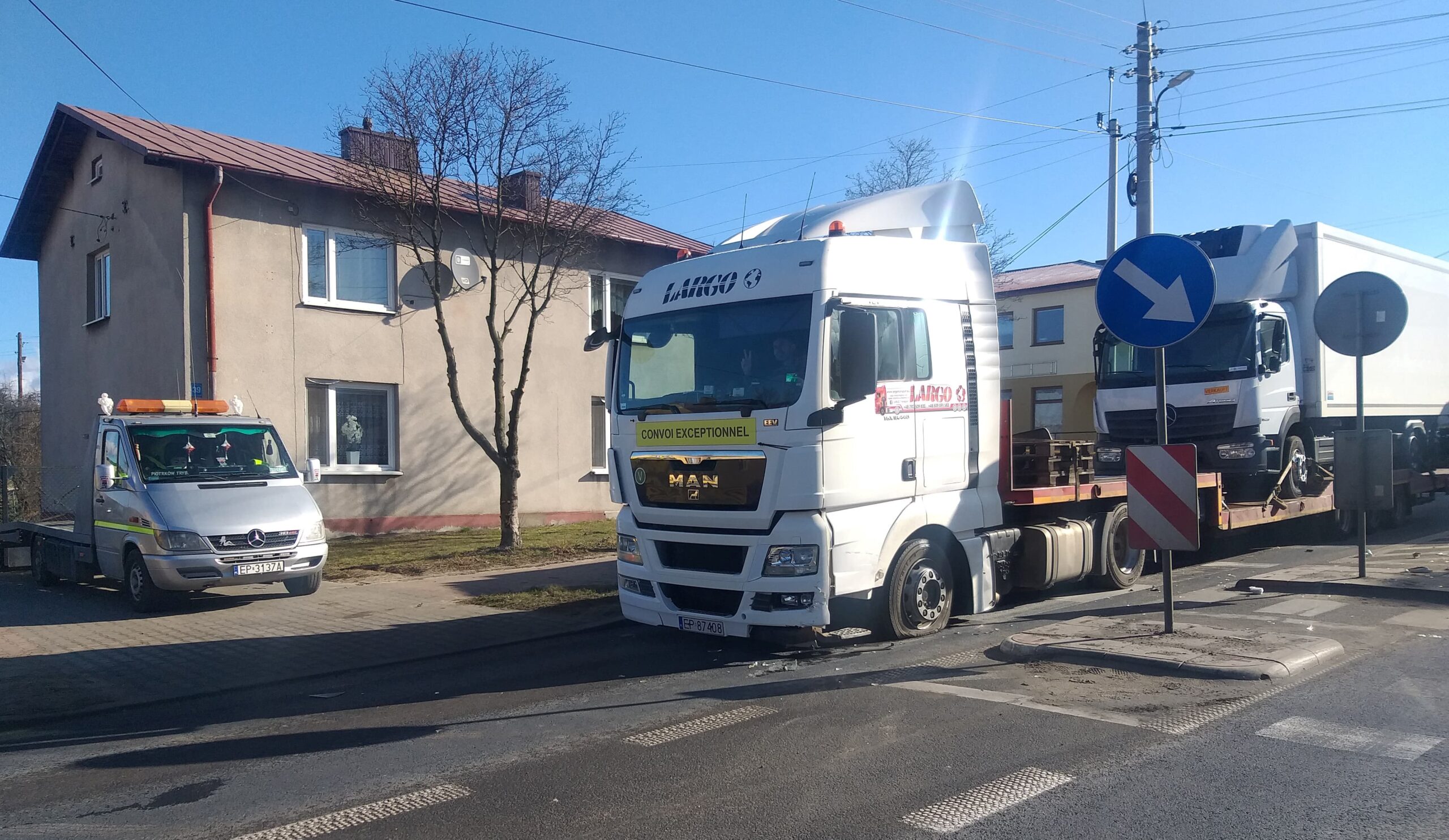 Na skrzyżowaniu ulicy Koneckiej ze Wschodnią w Sulejowie doszło do zderzenia osobówki z ciężarową lawetą. Aktualnie na DK74 tworzą się korki, bowiem uszkodzona ciężarówka blokuje przejazd. Ruch w stronę Piotrkowa jest niemożliwy. Samochody osobowe jadące od strony Kielc mogą skręcić w ulicę Sadową i dojechać do Opoczyńskiej, omijając zablokowane miejsce.