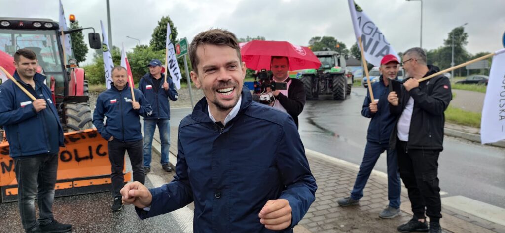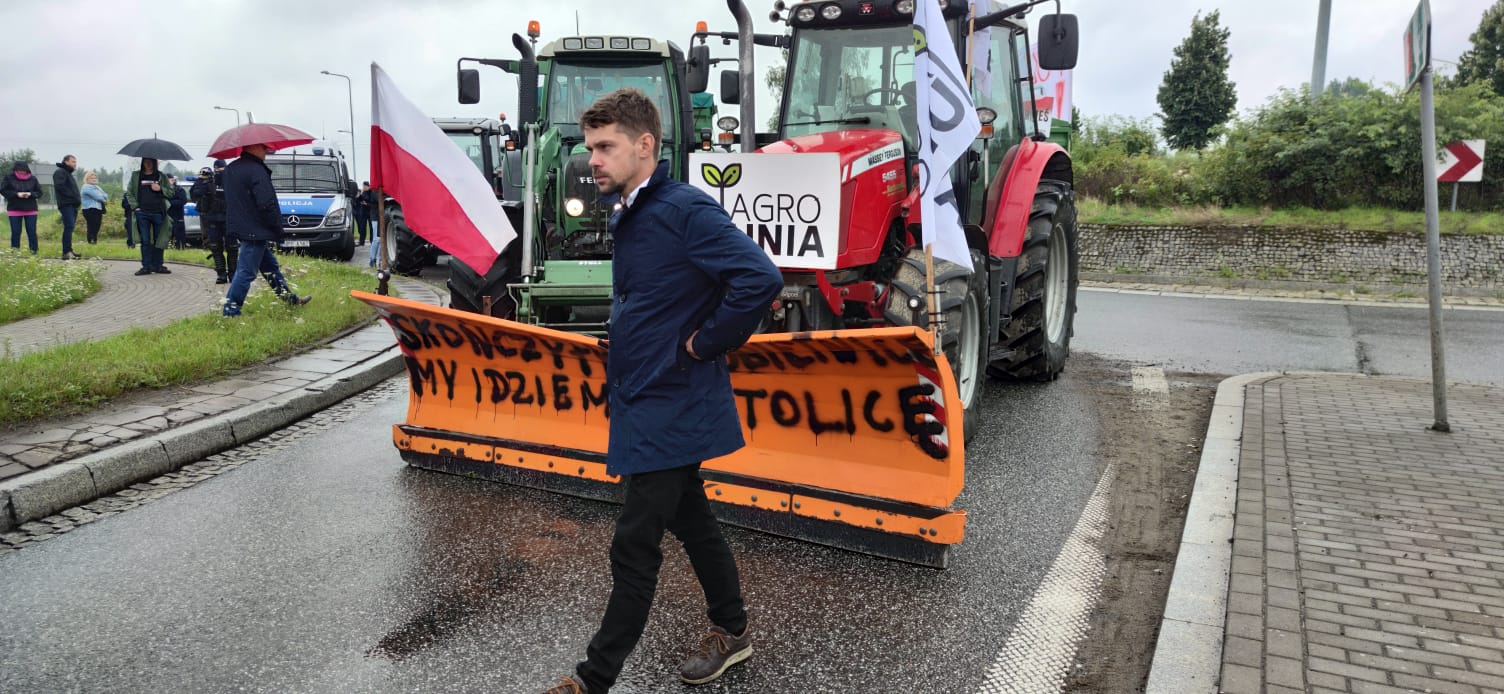 – To tutaj dzisiaj jest serce Polski. To tutaj jest serce Polski które pomijają politycy i nie chcą go reanimować. Informujemy jasno: za chwilę zmienimy miejsce, przejedziemy parę kilometrów dalej (na rondo przy wiadukcie z S8 – przyp. red.). Dzisiaj jesteśmy tutaj 24 godziny i czekamy do godziny 12:00. Jeżeli do południa nie będzie żadnej odpowiedzi od rządu, zapowiadamy dalsze działania. – mówił podczas porannej konferencji prasowej Michał Kołodziejczak, lider Agrounii. – Nie ukrywamy, że także prowadzimy kuluarowe rozmowy z politykami Prawa i Sprawiedliwości, czy z tymi którzy mają wpływ na cokolwiek. Dziwi nas jednak bezradność i niemoc. Oni nie wiedzą do kogo się odezwać. Niby chcieliby problem rozwiązać, ale nie ma kontaktu z Kancelarią Premiera. To wszystko wygląda tak, jakby premier był w Polsce oddzielonej jakąś ścianą, albo siedział na wieżowcu w którym nie ma ani windy ani schodów, i nie można do niego dojść! – grzmiał Kołodziejczak. – Poczekamy do 12:00 i wtedy możemy przejść do dalszych działań, no nawet brak odpowiedzi, też jest dla nas odpowiedzią – dodał.