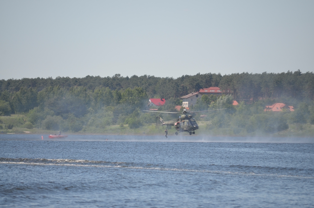Żołnierze z 25. Brygady Kawalerii Powietrznej z Tomaszowa Mazowieckiego oraz 3 i 4 skrzydła Sił Powietrznych, ćwiczą nad Zalewem Sulejowskim. Instruktorzy spadochroniarstwa trenują skoki do wody ze śmigłowców.