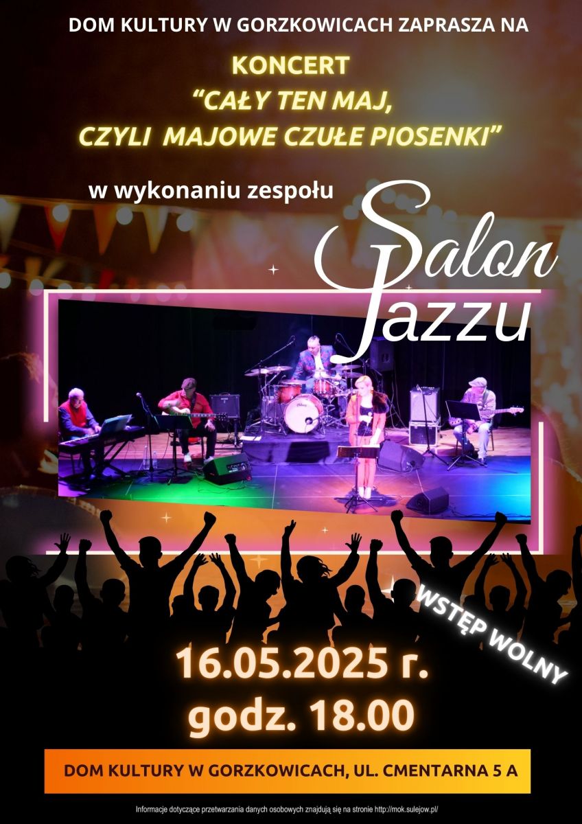 Dom Kultury w Gorzkowicach zaprasza na koncert „Cały ten maj, czyli majowe czułe piosenki” w wykonaniu zespołu Salon Jazzu.