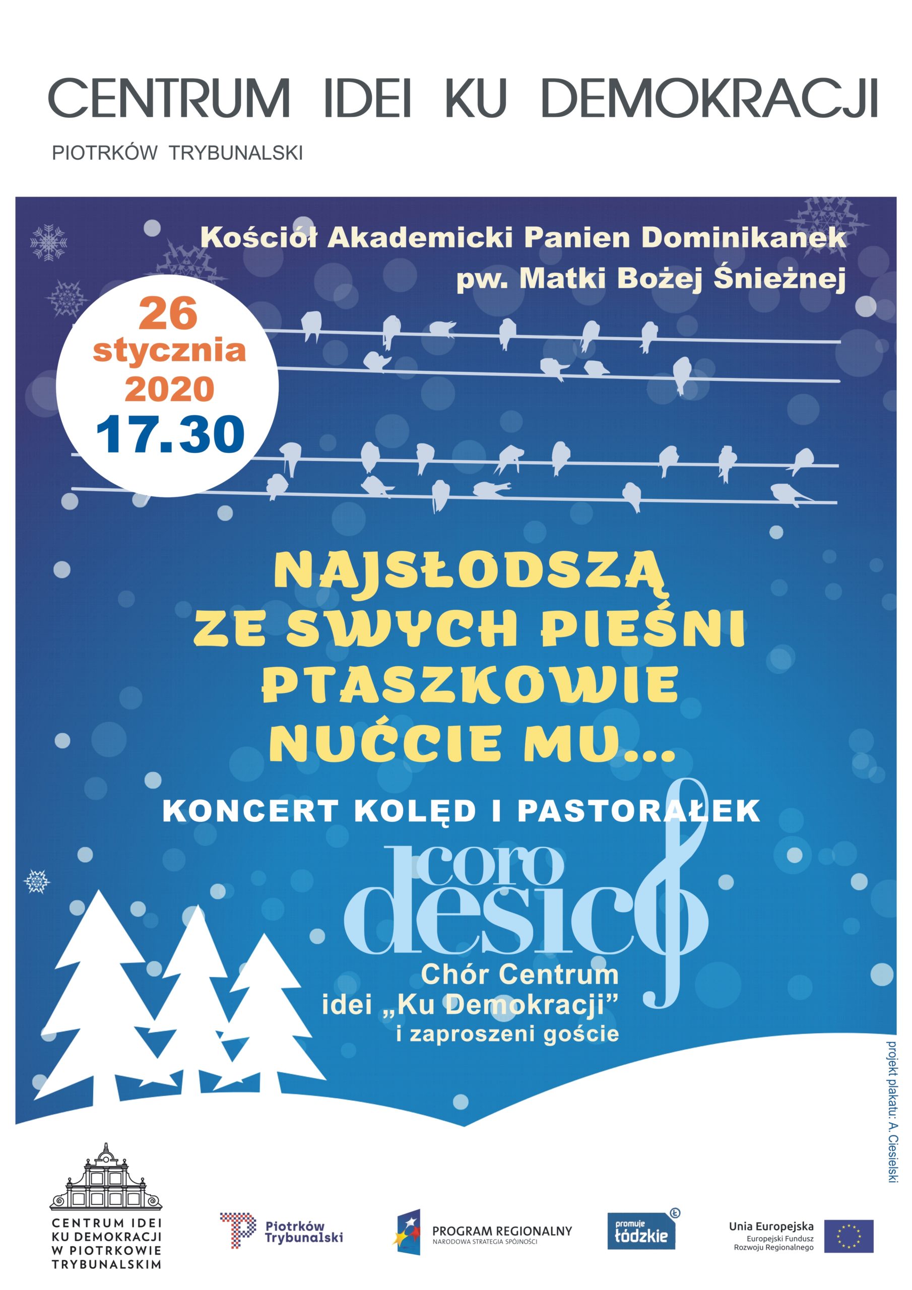 Piotrkowski chór Centrum idei Ku Demokracji „CORO DESICO” zaprasza na swój koncert, który odbędzie się w niedzielę 26 stycznia 2020 r. o godz. 17:30 w Kościele Akademickim Panien Dominikanek p.w. Matki Bożej Śnieżnej.