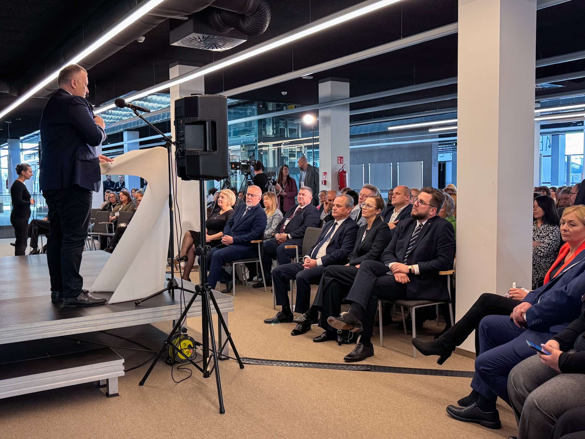 Już od samego rana frekwencja była imponująca – konferencję oficjalnie otwarto o godzinie 9:30, a tuż po niej dr Łukasz Politaniś z Akademii Piotrkowskiej przedstawił prelekcję na temat roli aktywności na rynku pracy w zdobywaniu kompetencji zawodowych.