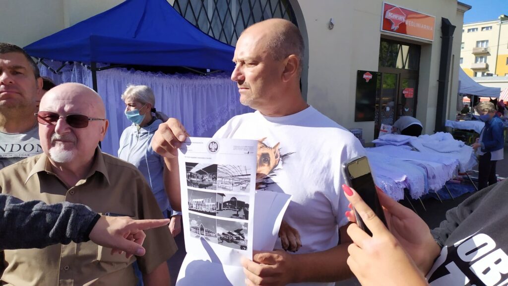 – Jesteśmy w posiadaniu pisma od Ogólnopolskiej Federacji Przedsiębiorców od której chcieliśmy się w całości odciąć. Nie znamy tych ludzi, podszyli się pod naszą organizację, gdzie protestujemy tu od kilku miesięcy, a oni bezczelnie napisali pismo i podpisał się pod nim Prezes Zarządu, Jerzy Romański. Nikt, nigdy tego człowieka nie widział tu na hali, nikt nigdy z nim nie rozmawiał o tej sprawie, a napisał pismo do pana prezydenta i do radnych miasta Piotrkowa oczerniające nas i żądając natychmiastowego przeniesienia targowiska na teren „Ptaka”, a to jest właśnie w interesie tylko pana Ptaka. Pan Romański jest jakby jego przedstawicielem. Podszył się również pod nas pan Robert Stępiński, który sam się mianował, sam się wybrał i ogłosił, że jest prezesem kupców z Piotrkowa Trybunalskiego. Nikt z nas, nigdy tego człowieka nie wybierał. Założył sobie jakąś stronę internetową i cały czas uważa się za naszego prezesa. Chcielibyśmy, żeby się ten pan od nas odciął. W momencie gdy protestowaliśmy to poprosiliśmy go żeby nam pomógł to stchórzył, uciekł i stwierdził, że to nie jest jego interes. Tak zachowuje się pan Stępiński – mówił podczas spotkania z dziennikarzami Tomasz Kowalewski, lider protestujących kupców.