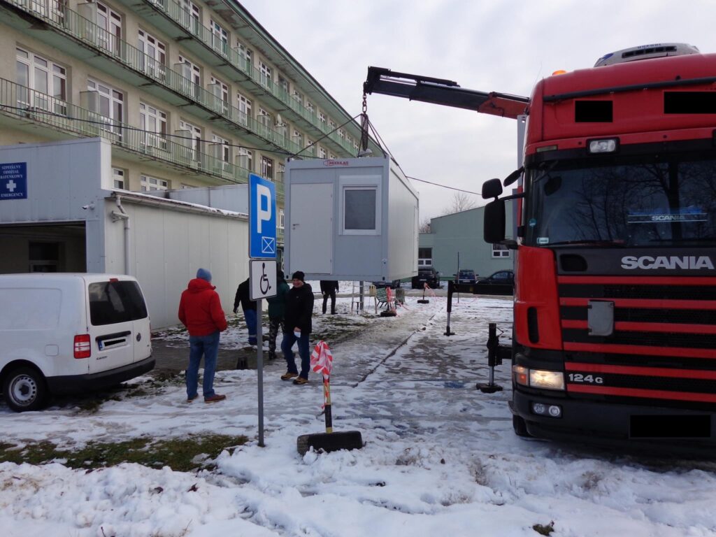 Kontenery pochodzą z Agencji Rezerw Materiałowych, trafiły do Samodzielnego Szpitala Wojewódzkiego im. Mikołaja Kopernika w Piotrkowie Trybunalskim za sprawą Łódzkiego Urzędu Wojewódzkiego.