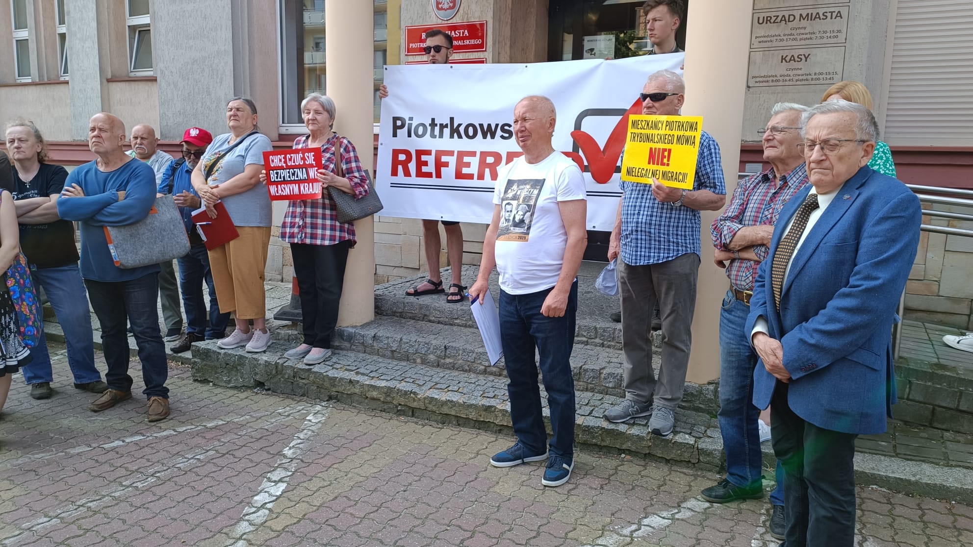 Potem zaczęło się straszenie mieszkańców nieprzychylnych przeprowadzeniu referendum. – Ktokolwiek będzie bojkotował to referendum, ktokolwiek będzie je atakował, poniesie za to polityczną odpowiedzialność. Po udanym referendum muszą w mieście rządzić patrioci, patrioci lokalni, ale i patrioci polscy, którzy będą bronili mieszkańców Piotrkowa Trybunalskiego przed masową migracją. Jeśli państwo nie znajdziecie się po dobrej stronie mocy, jeśli państwo nie będziecie bronili mieszkańców Piotrkowa Trybunalskiego, zapłacicie za to polityczną cenę. Trzeba mówić wprost! (…) Z uśmiechem na ustach będziemy wyprowadzali tych wszystkich radnych, którzy w wyniku tego referendum demokratycznego przecież, poniosą odpowiedzialność za swoją butę, arogancję. –grzmiał Bąkiewicz.