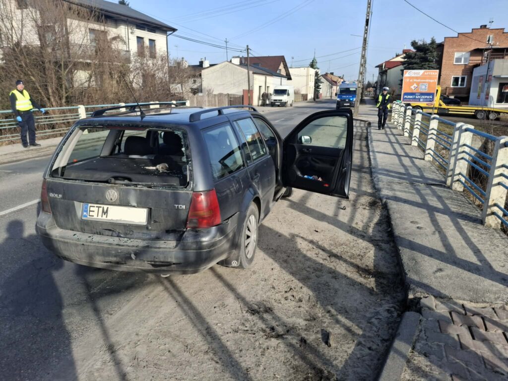 Do wypadku doszło na przejściu dla pieszych, w okolicy mostu na ulicy Świętokrzyskiej w Wolborzu. W zatrzymującego się przed zebrą Volkswagena, uderzył kierujący BMW. W wyniku obrażeń ciała, kierująca Volkswagenem trafiła na badania do szpitala.