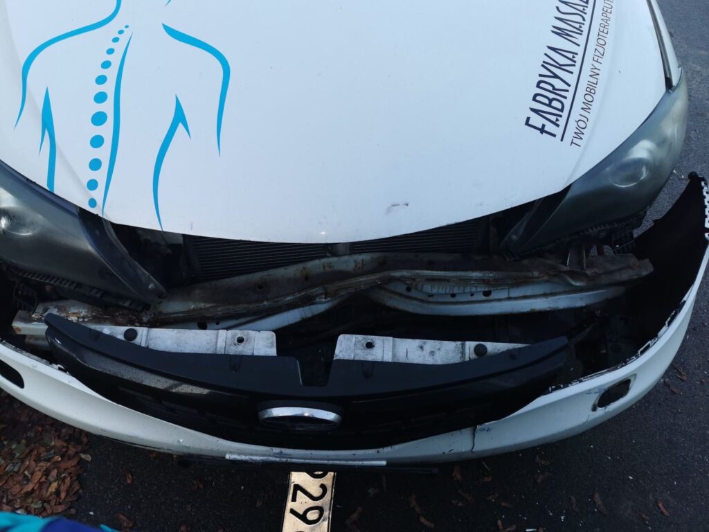 Hej. Słuchajcie stała się rzecz, która dzisiaj złamała moje serce. Około godziny 5:00 nad ranem ktoś delikatnie mówiąc „uderzył” w mój samochód. Siła uderzenia była tak duża, że moje auto staranowało przodem busa, który stał 2 metry dalej. Auto jest do kasacji. Podobno był to bus, nie wiem, nie widziałam. Rano jak podeszłam do auta to zobaczyłam taki obrazek. Po sprawcy została tylko ta ramka od tablicy rejestracyjnej. Błagam udostępnijcie posta, może ktoś coś widział, może ktoś ma dojście do ludzi od kamer w okolicy Jagiellońska, Batorego, 3-go Maja, Żeromskiego, Krakowskie Przedmieście – relacjonuje w mediach społecznościowych właścicielka rozbitego samochodu.