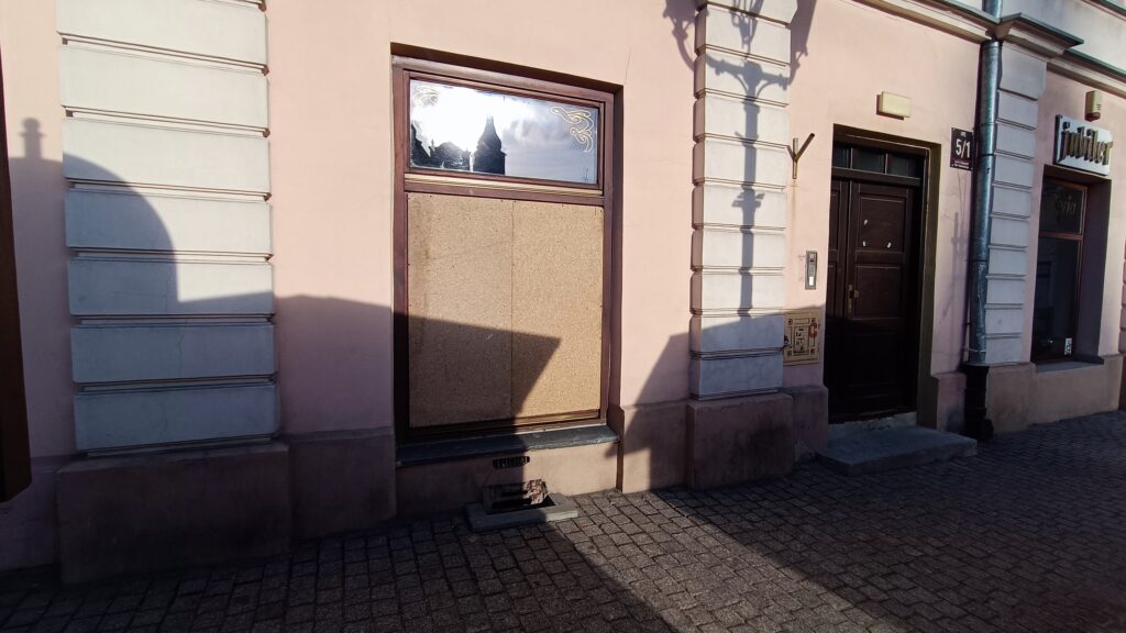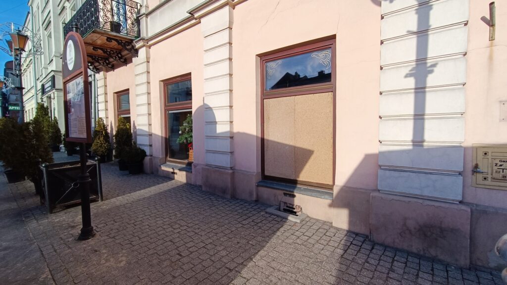 Tej samej nocy ktoś uszkodził szybę w aptece. – Mogę się tylko domyślać, że zrobiła to jakaś grupa. Szli i po kolei uszkadzali szyby na starówce. Ja mam antywłamaniowe okna więc nie zdołali ich wybić, ale szyba jest mocno uszkodzona. Co z tego, że mam ubezpieczenie, jak i tak będę musiał ponieść pewnie koszty – mówi właściciel apteki.