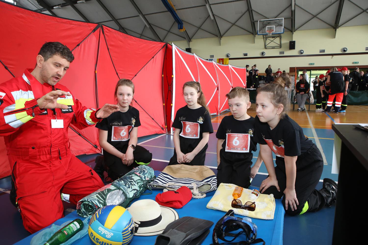 W hali sportowej GOKiS ratownicy WOPR oraz instruktorzy Zespołu Szkół Centrum Kształcenia Zawodowego w Bujnach przygotowali pokazy pierwszej pomocy i sprzętu jakim dysponują służby ratownicze. Chętni mogli także skorzystać z zajęć sportowych.