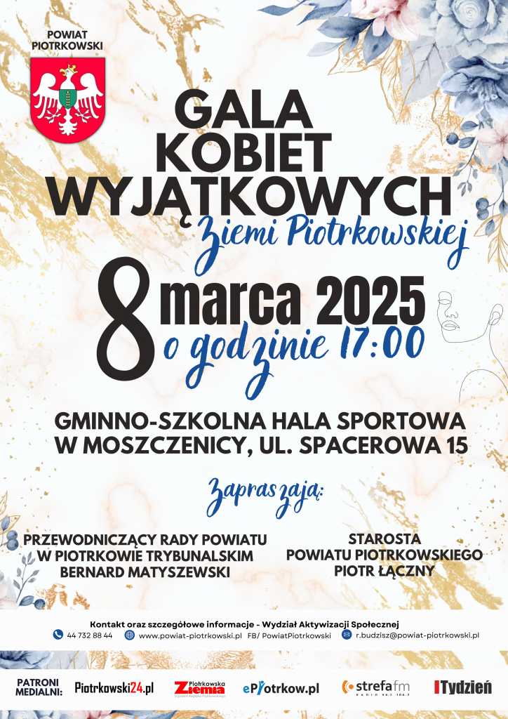 Gala Kobiet Wyjątkowych przypomnijmy odbędzie się 8 marca o godz. 17.00 w Gminno – Szkolnej Hali Sportowej im. Romana Kaźmierczaka w Moszczenicy.