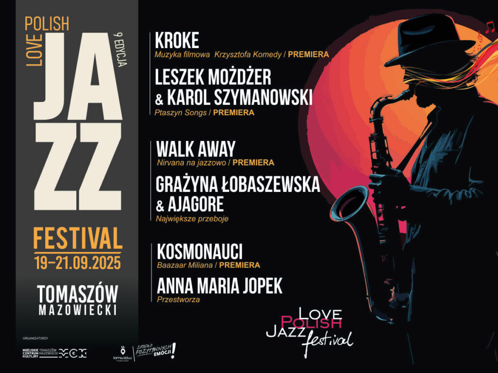 Przed nami również coroczne święto jazzu, a to za sprawą Love Polish Jazz Festival. To już dziewiąta edycja festiwalu i zapowiada się bardzo ciekawie. W dniach 19-21 września 2025 roku w Arenie Lodowej w Tomaszowie Mazowieckim wystąpią: Leszek Możdżer & Karol Szymanowski, Kroke, Walk Away, Grażyna Łobaszewaska & Ajagore, Kosmonauci oraz Anna Maria Jopek. Festiwal poprzedzą warsztaty jazzowe.