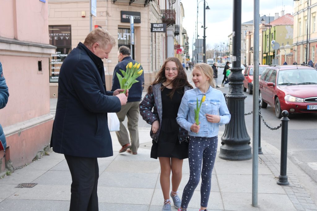 Poseł Grzegorz Lorek oraz Grzegorz Wojciechowski wicemarszałek województwa, z pomocą harcerzy ze Szczepu Matecznik, w piątek 8 marca wręczali kwiaty napotkanym paniom.