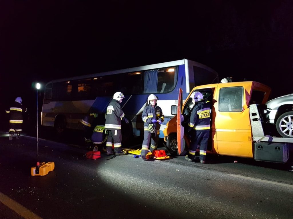 Kierowca autobusu zatrzymał się na przystanku. W tym miejscu nie ma zatoki, dlatego autokar stał na jezdni. – W pewnym momencie w autobus uderzyła laweta. W autokarze znajdowało się czterech pasażerów oraz kierowca. Nikt z nich nie ucierpiał. Ranne zostały za to osoby jadące lawetą. Pasażera mercedesa musieliśmy uwolnić z zakleszczonego pojazdu – informuje Piotrkowski24 mł. bryg. Wojciech Pawlikowski, rzecznik prasowy w PSP w Piotrkowie. – 44-letni kierowca lawety najprawdopodobniej nie zachował bezpiecznej odległości przed poprzedzającym go pojazdem i doprowadził do zderzenia. Obaj kierujący byli trzeźwi – wyjaśniła asp. Ilona Sidorko z biura prasowego KMP w Piotrkowie.