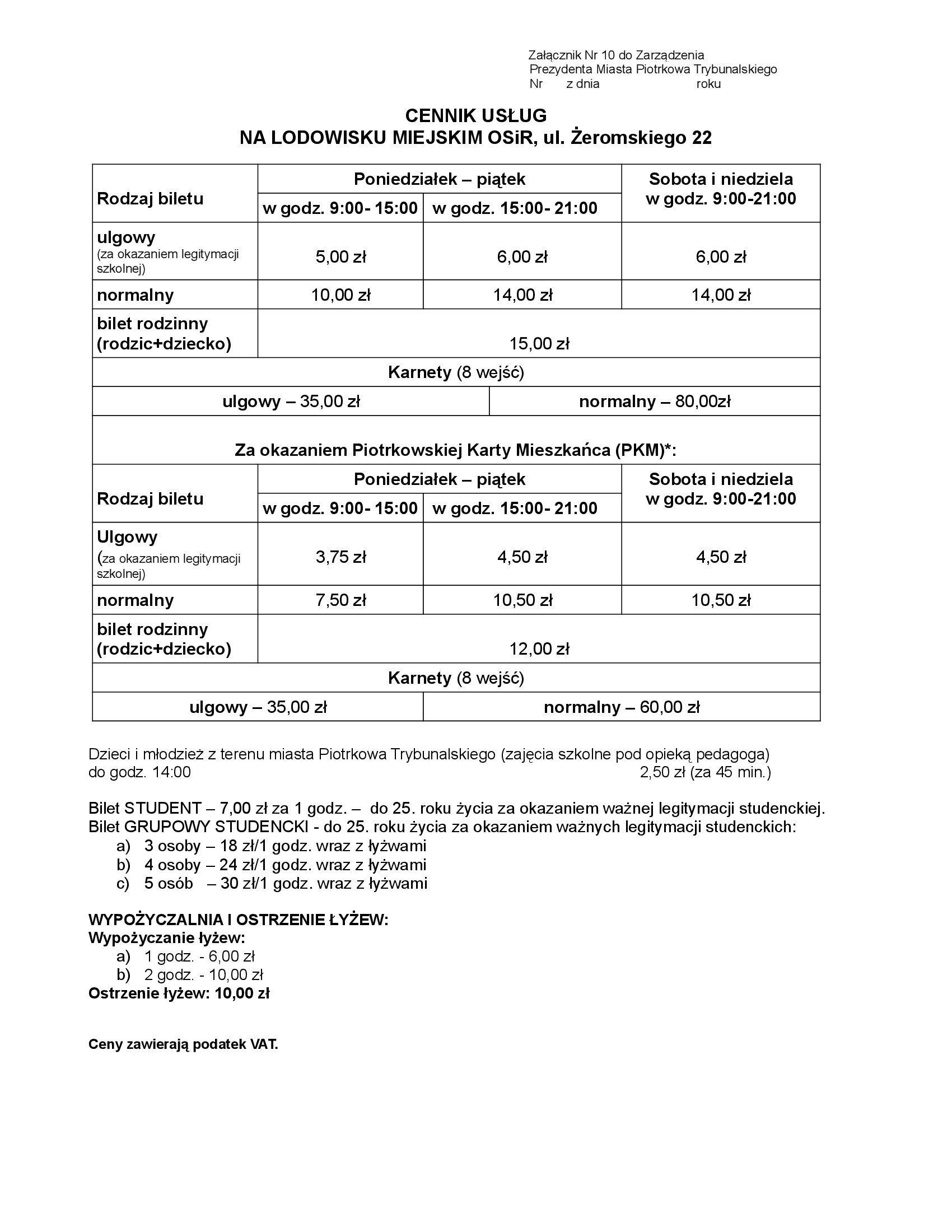 Kasa na lodowisku miejskim OSIR czynna w godzinach: