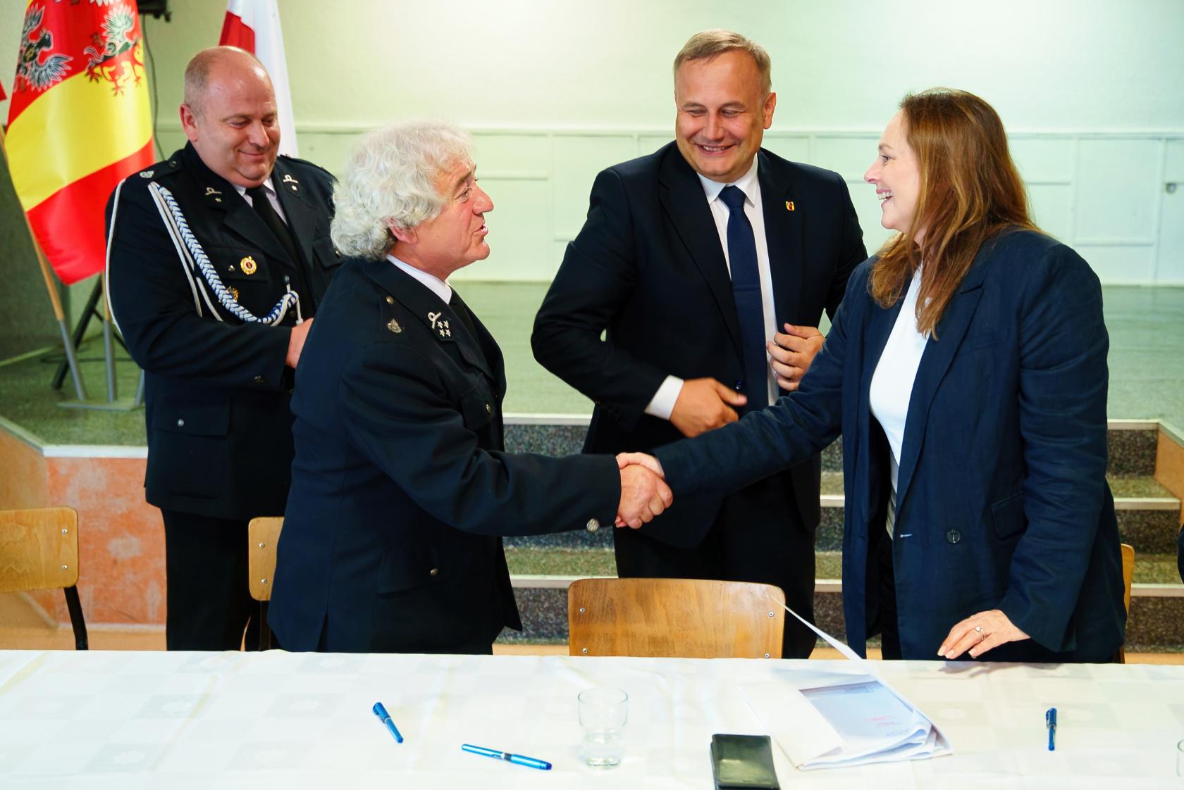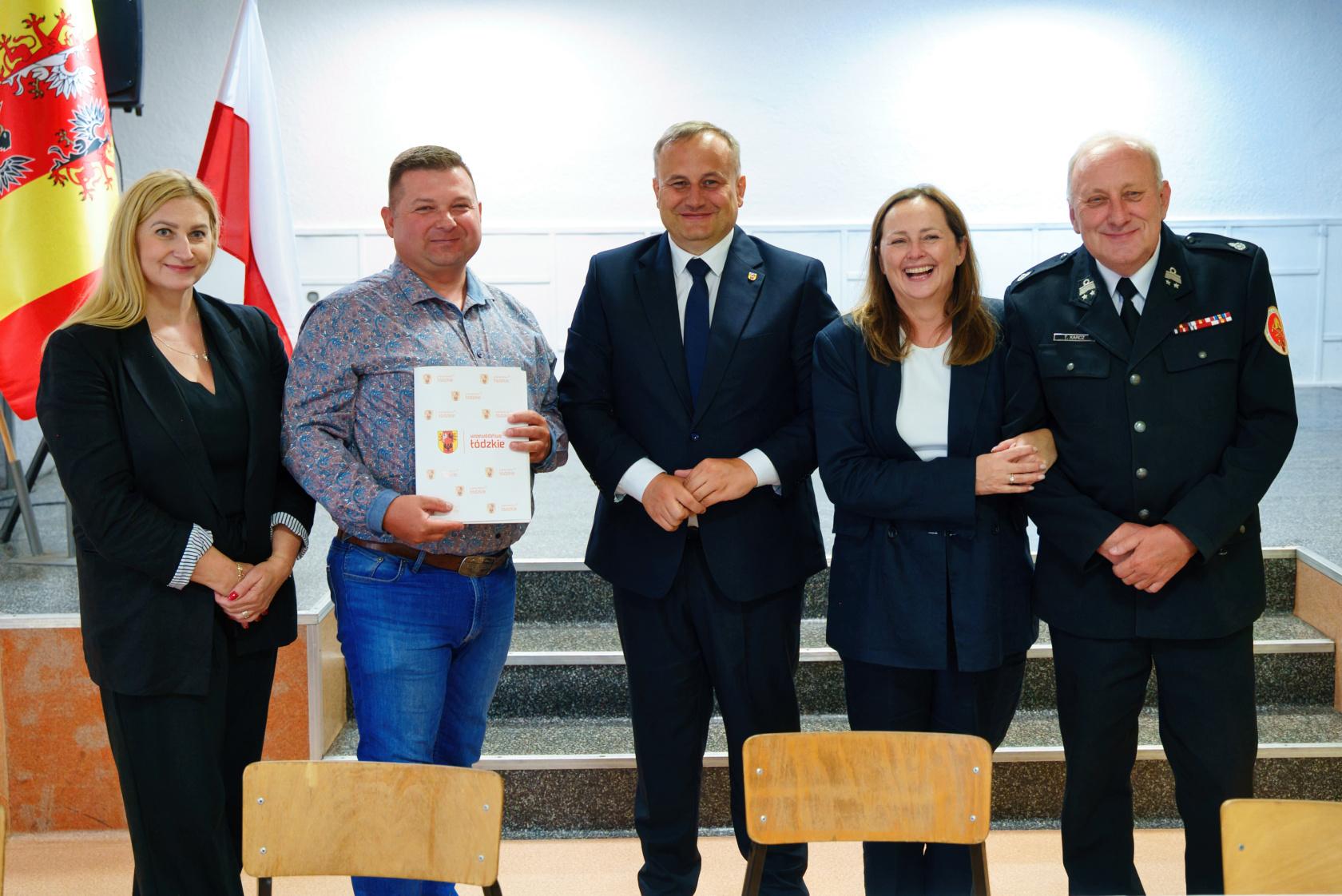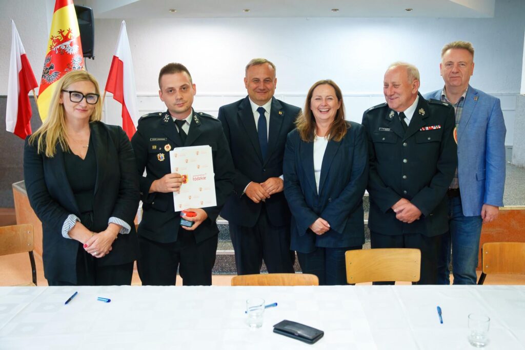 Dofinansowania strażakom gratulowali Joanna Skrzydlewska, marszałek województwa łódzkiego, wicemarszałek Piotr Wojtysiak, Magdalena Spólnicka, wiceprzewodnicząca Sejmiku Województwa Łódzkiego i radny sejmiku Jacek Sokalski.