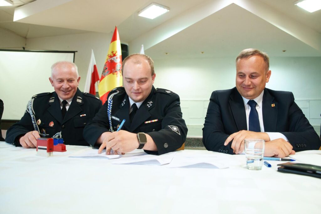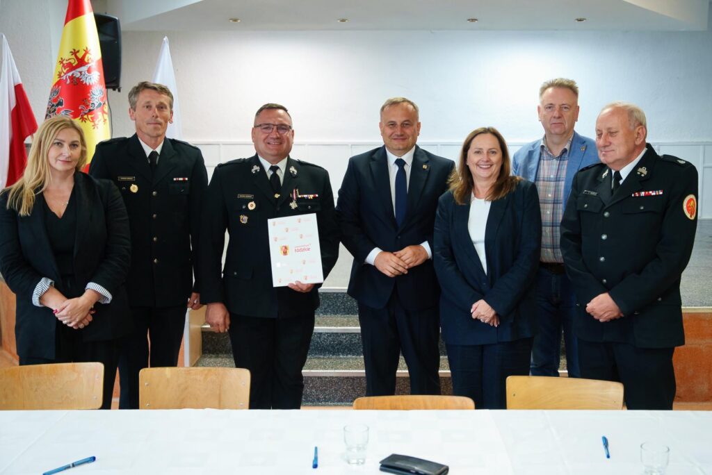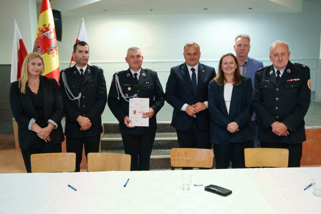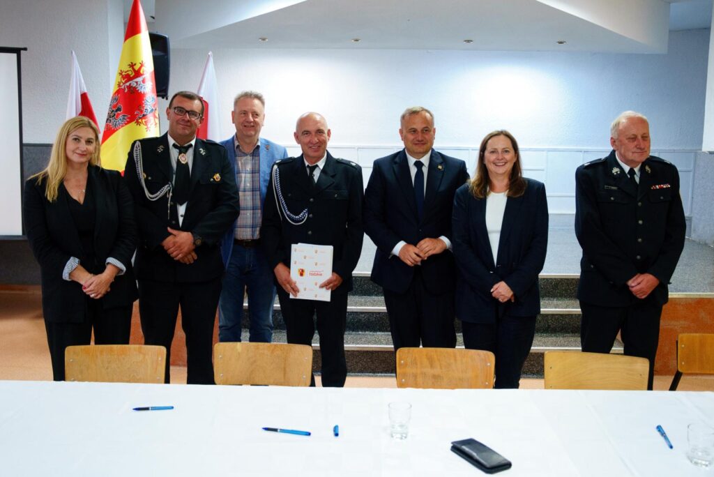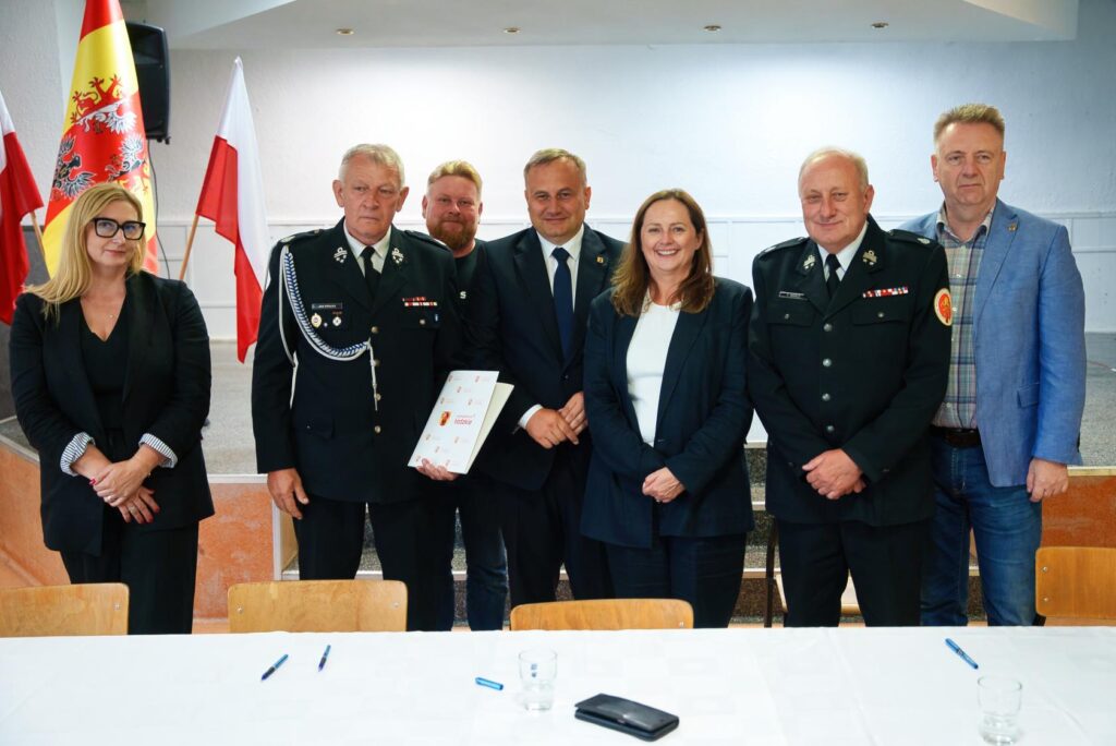 Dofinansowania strażakom gratulowali Joanna Skrzydlewska, marszałek województwa łódzkiego, wicemarszałek Piotr Wojtysiak, Magdalena Spólnicka, wiceprzewodnicząca Sejmiku Województwa Łódzkiego i radny sejmiku Jacek Sokalski.
