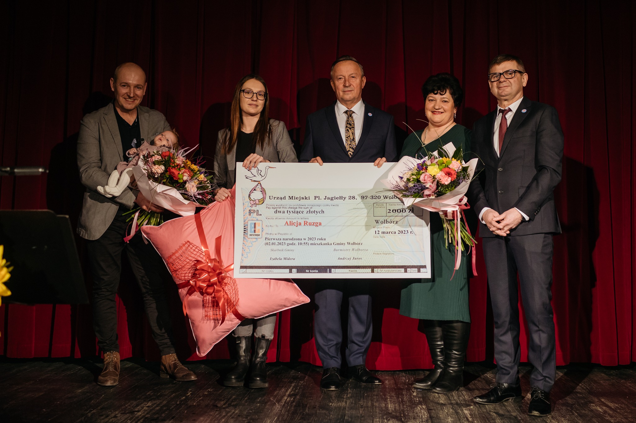 Alicja była pierwszym dzieckiem, które urodziło się w gminie Wolbórz w roku 2023, przyszła na świat 2 stycznia. Tradycją jest, że mama pierwszego narodzonego dziecka w gminie otrzymuje od burmistrza Wolborza Andrzeja Jarosa kartę podarunkową i kwiaty podczas koncertu z okazji Dnia Kobiet. Tak było i tym razem w Wolborskim Centrum Kultury. Dodatkowo rodzice Alicji otrzymali tradycyjną poduchę, którą przygotowały Koła Gospodyń Wiejskich gminy Wolbórz, a wręczyła przewodnicząca KGW Młynary Elżbieta Kobierska.