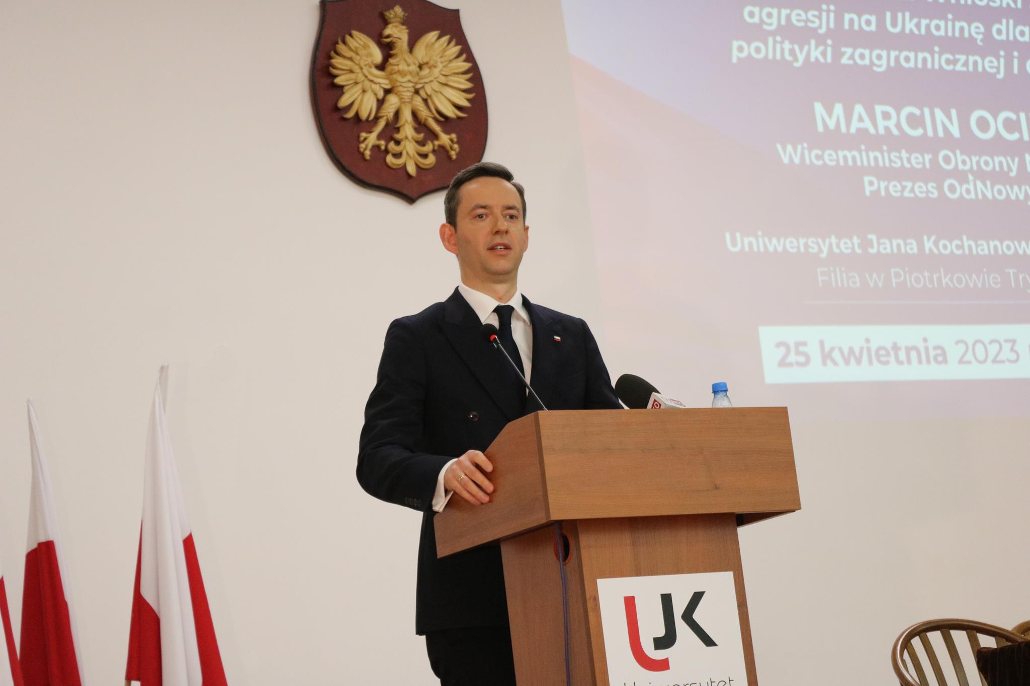 – Spodziewamy się, że najbliższe kilka tygodni mogą być decydujące dla konfliktu ma Ukrainie – powiedział w Piotrkowie Trybunalskim Marcin Ociepa – wiceszef resortu obrony. Polityk w piotrkowskiej filii UJK wygłosił wykład otwarty: “Świat od nowa. Wnioski z rosyjskiej agresji na Ukrainę dla polskiej polityki zagranicznej i obronnej”