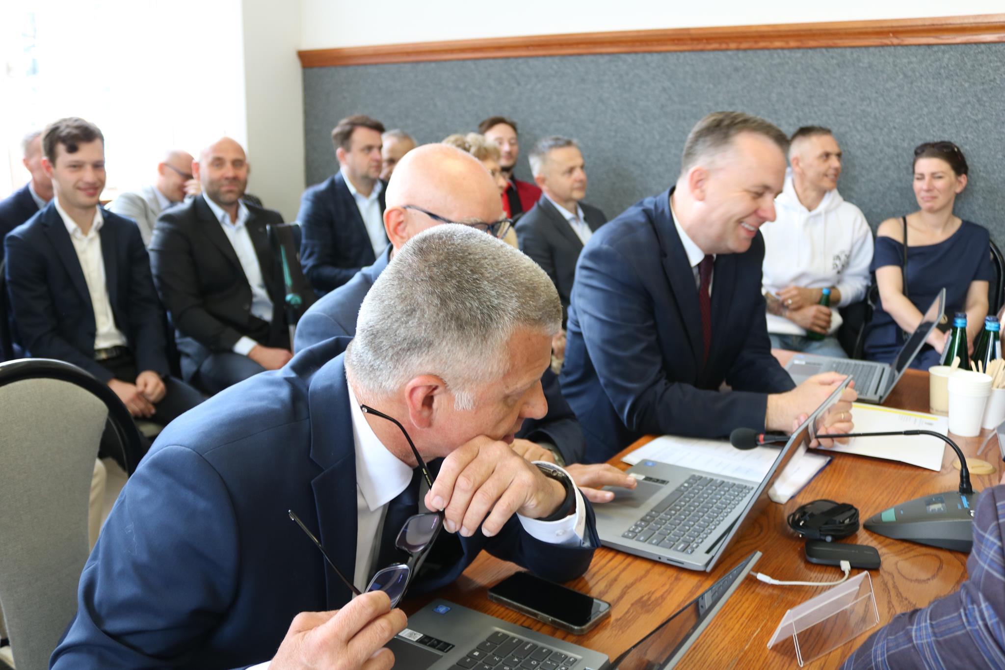 Radni podczas pierwszej sesji wybrali przewodniczącego. Został nim Mariusz Staszek. Za jego wyborem głosowało radnych 17, przeciw było 6 osób. Ponadto radni wybrali trzech wiceprzewodniczących. Zostali nimi: Mariusz Maciołek, Konrad Czyżyński i Andrzej Piekarski. Radni zgłosili także Rafała Czajkę, jednak nie uzyskał on wymaganej liczby głosów.