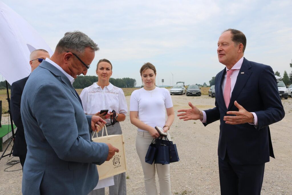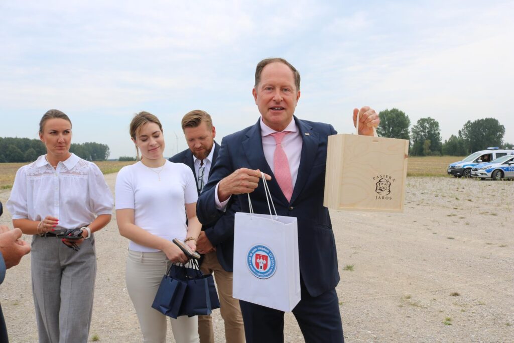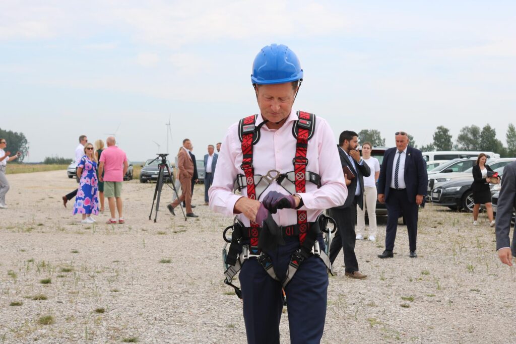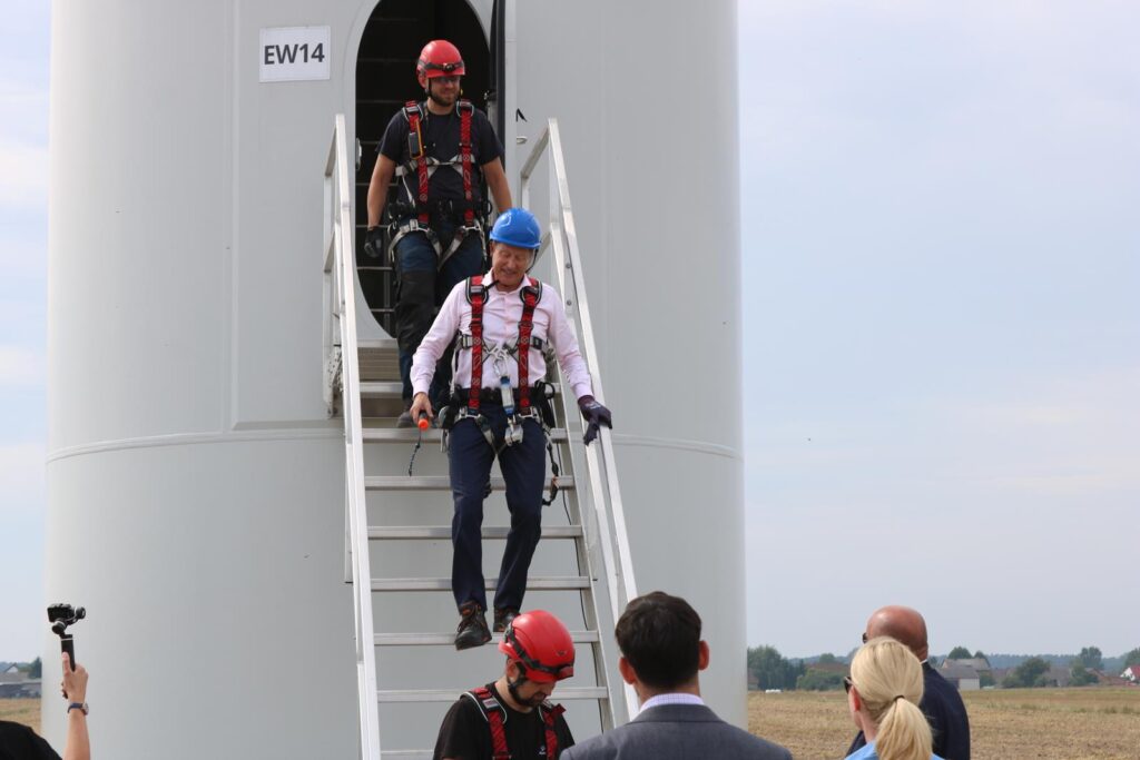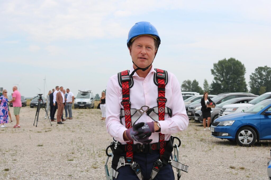 – Wizyta pana Ambasadora na terenie naszej gminy w celu promocji energii wiatrowej to dla nas wielkie wyróżnienie. Od lat stawiamy na OZE, planując i stwarzając warunki do budowania farm wiatrowych i fotowoltaicznych. Przed nami kolejna wielka inwestycja w zieloną energię, którą planujemy z koncernem Tauron Zielona Energia, będzie to farma fotowoltaiczną połączona z magazynem energii. – powiedział Andrzej Jaros.