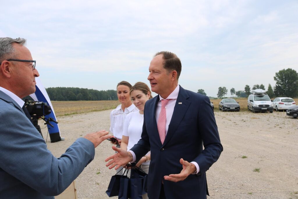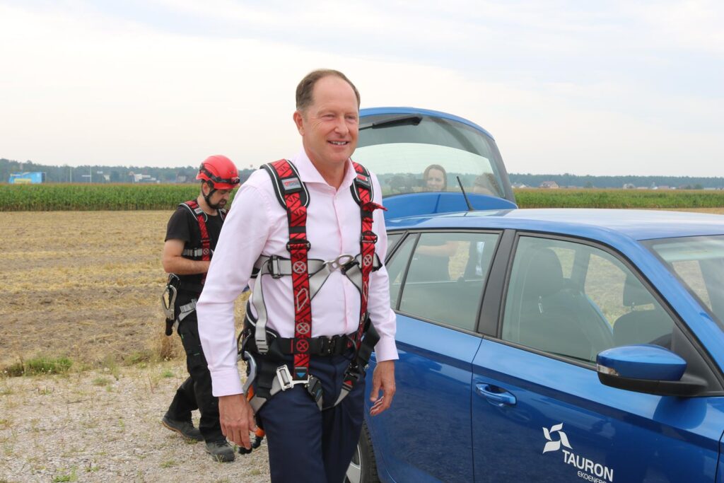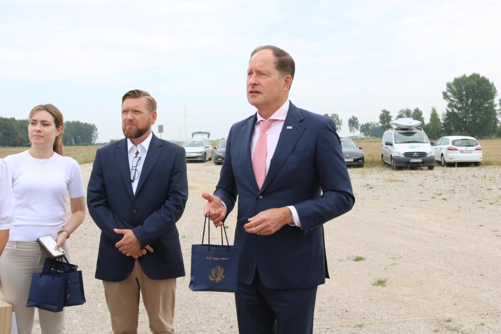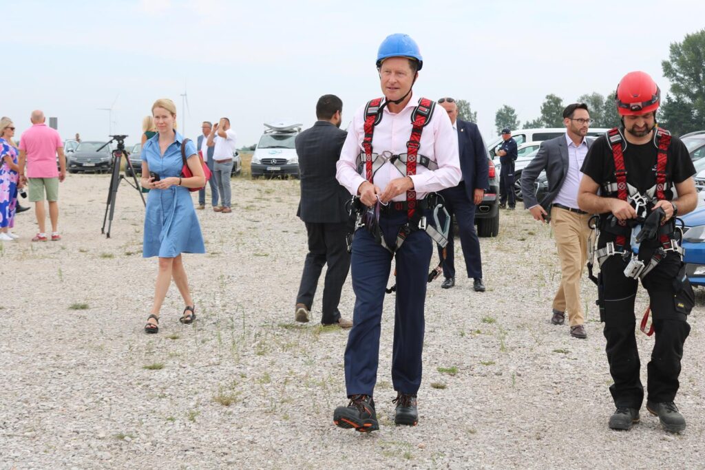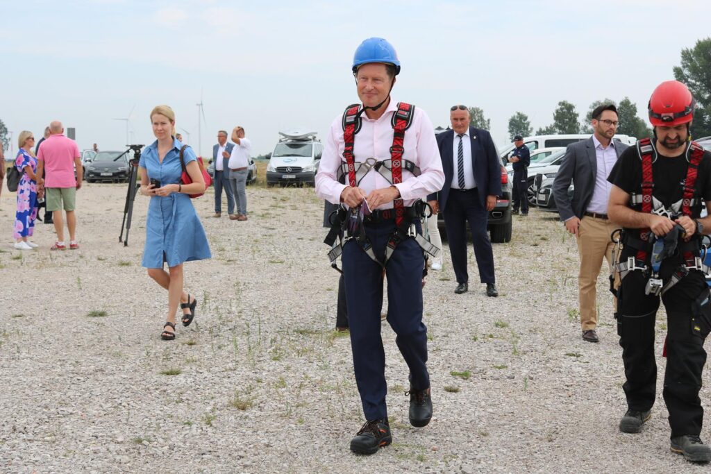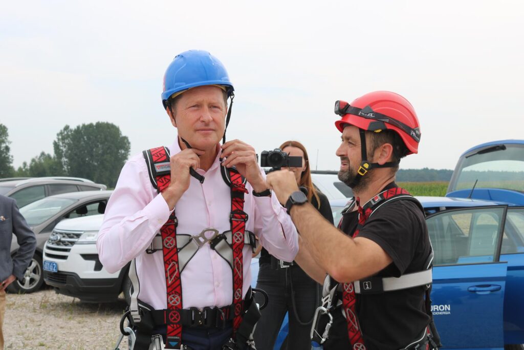 – Wizyta pana Ambasadora na terenie naszej gminy w celu promocji energii wiatrowej to dla nas wielkie wyróżnienie. Od lat stawiamy na OZE, planując i stwarzając warunki do budowania farm wiatrowych i fotowoltaicznych. Przed nami kolejna wielka inwestycja w zieloną energię, którą planujemy z koncernem Tauron Zielona Energia, będzie to farma fotowoltaiczną połączona z magazynem energii. – powiedział Andrzej Jaros.