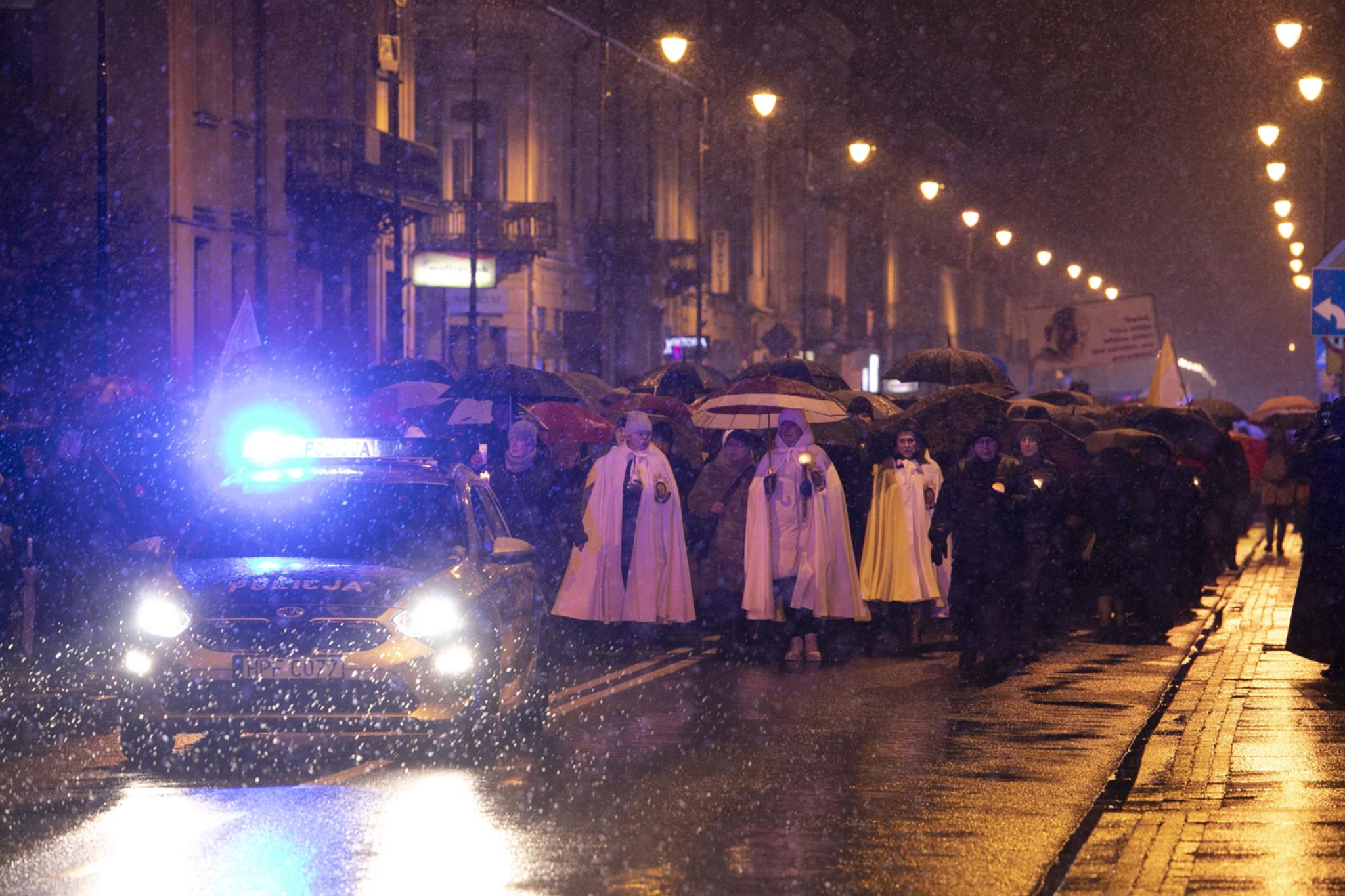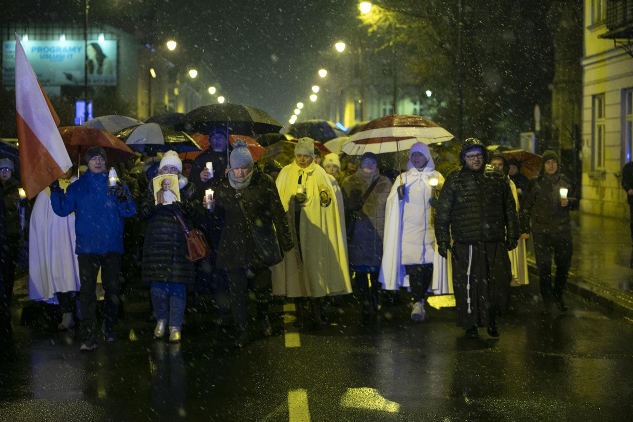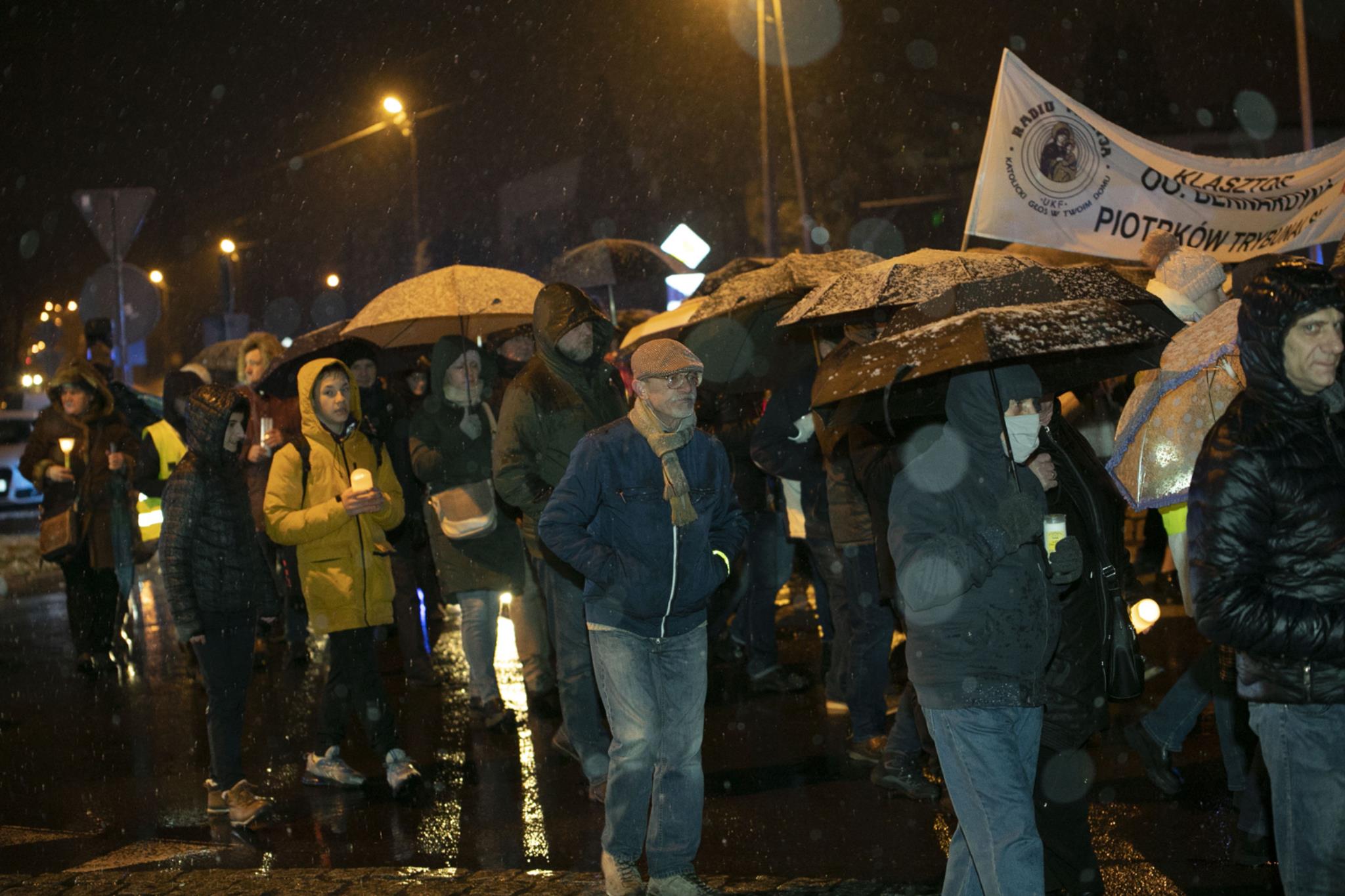 Ulicami Piotrkowa przeszedł w niedzielę Marsz Papieski. Wierni wyruszyli z kościoła św. Jana Pawła II, a następnie przeszli ulicą Polną, Kościelną i Słowackiego do pomnika papieża Polaka. Tam o 21:37 modlili się za duszę duchownego.