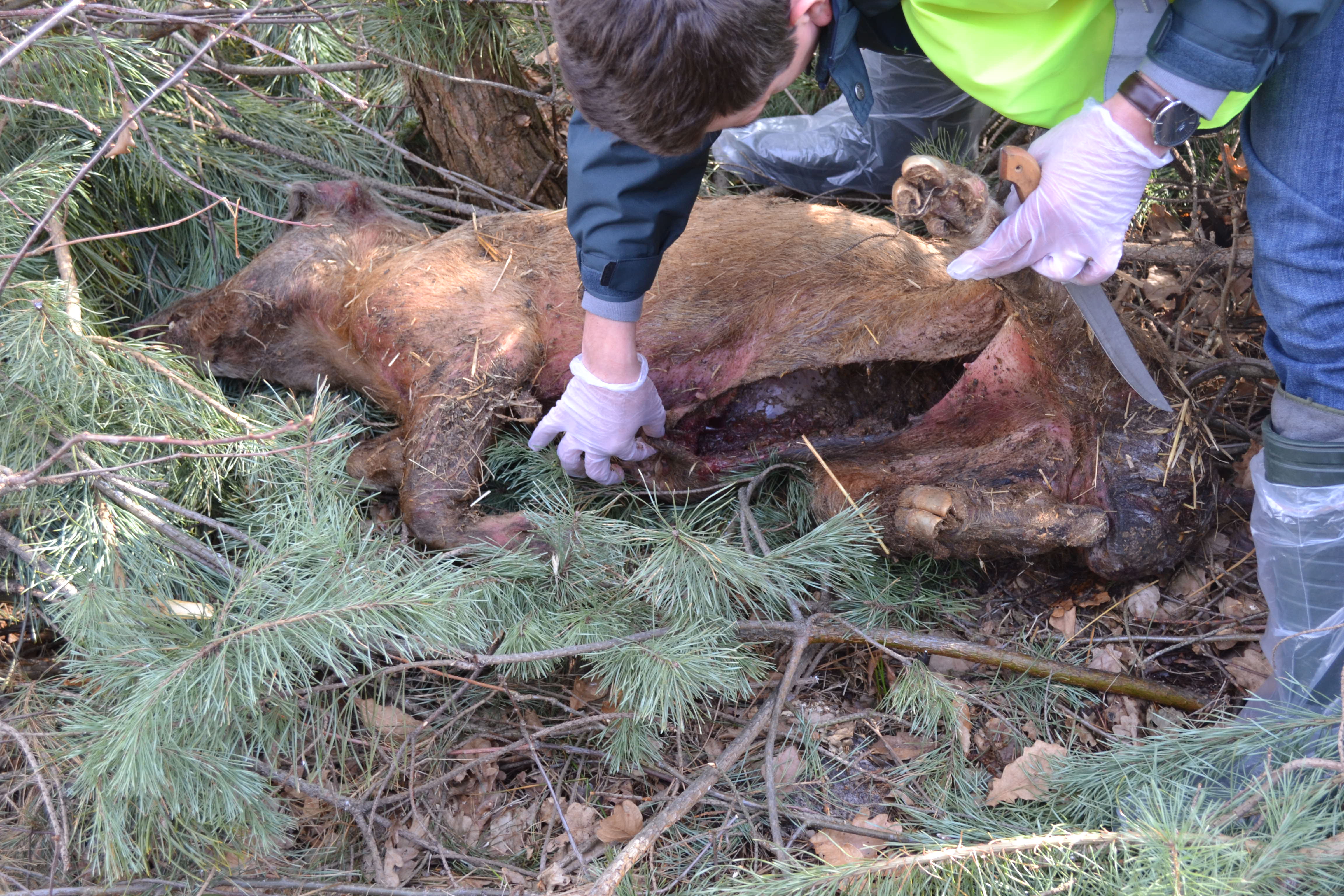 Służby weterynaryjne sprawdzają czy martwa świnia znaleziona w na skraju lasu niedaleko Ręczna, była zakażona Afrykańskim Pomorem Świń. Być może padłe zwierze wyrzucił do lasu rolnik, który nie chciał ponieść kosztów jej utylizacji. Na miejscu byli przedstawiciele Powiatowego Lekarza Weterynarii i Urzędu Gminy.