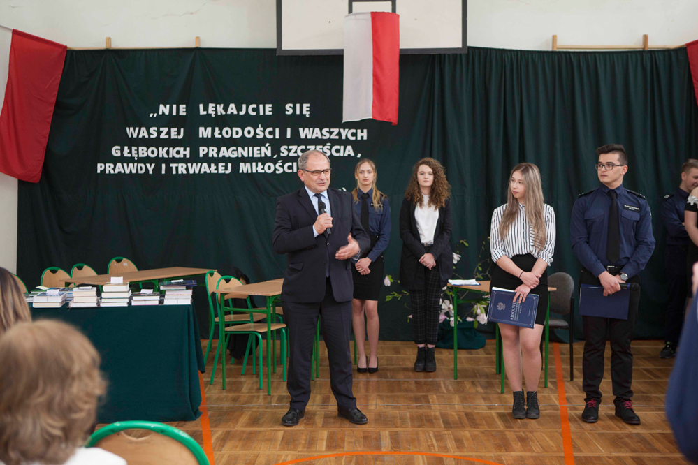 – Tym, którzy odebrali nagrody, serdecznie gratuluję wyników w nauce, za wszystkich trzymam kciuki, bo przecież niebawem matura. Mam nadzieję, że wszystkie egzaminy zdacie bez przeszkód, i to z jak najlepszym wynikiem – takie życzenia uczniom szkoły w Bujnach przekazał Piotr Wojtysiak, wicestarosta piotrkowski. Pierwsze egzaminy maturalne już 4 maja w środę. Na pierwszy ogień język polski. – Jasne, że się stresuję, bo pomimo tego, że starałem się uczyć powiedzmy regularnie przez te wszystkie lata, to jednak taka niepewność pozostaje. Nie mam typów na egzamin, na prawdę to może być wszystko – mówił z uśmiechem Michał. – Ja staram się jeszcze nie stresować, najgorsza będzie noc tuż przed egzaminem – dodała uczennica Ania.