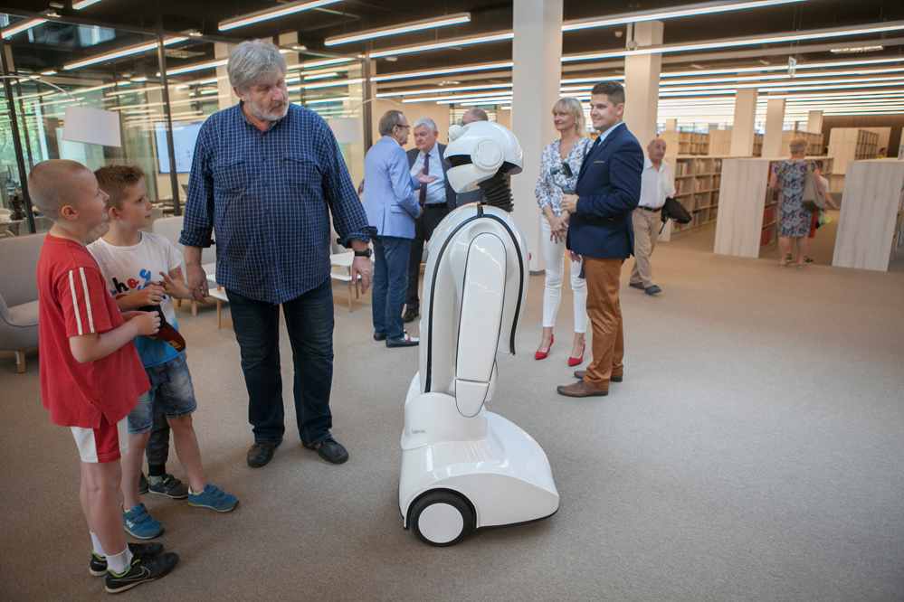 Wchodzących do Mediateki wita robot Euzebiusz, który odpowiada na proste pytania i kieruje do wypożyczalni. Pierwszego wypożyczenia książki dokonała obecna na otwarciu Magdalena Gawin Wiceminister Kultury, oraz Krzysztof Chojniak, prezydent Piotrkowa.