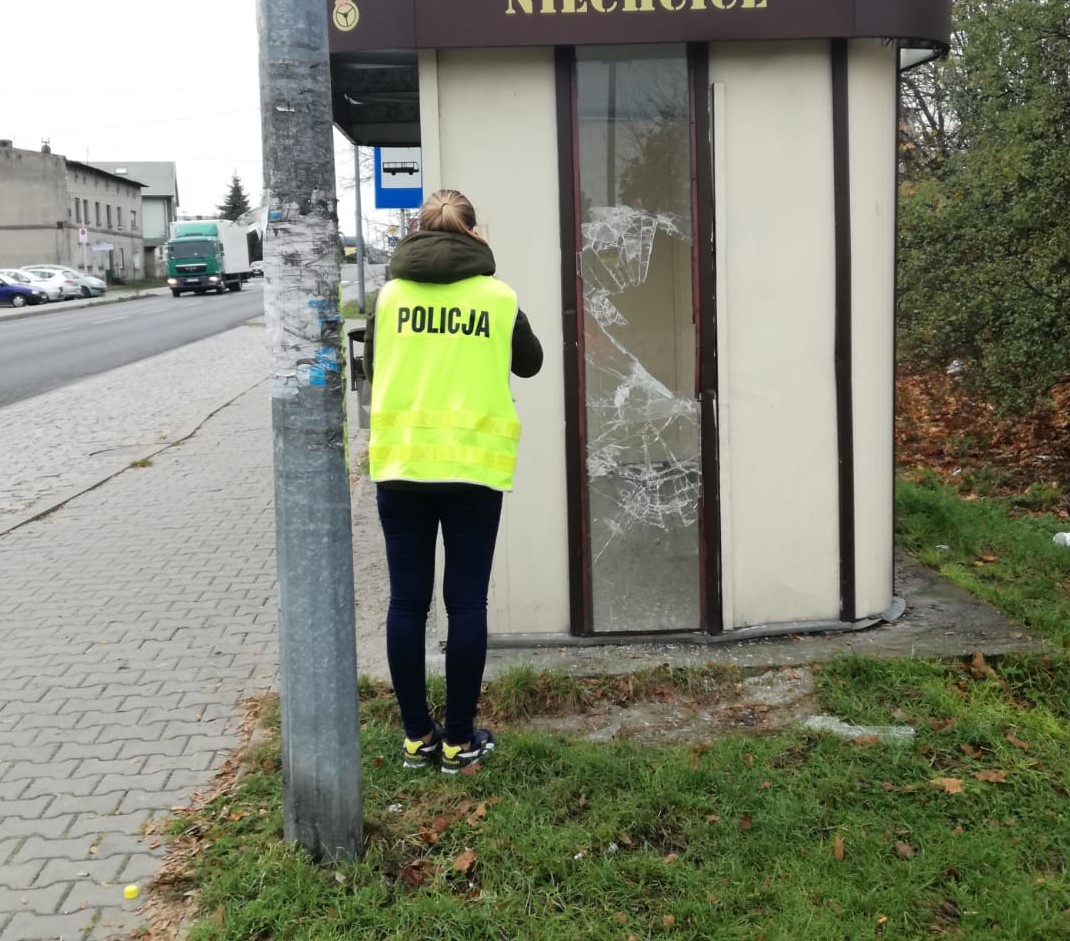 We wtorek w godzinach wieczornych mundurowi otrzymali zgłoszenie o mężczyźnie demolującym przystanek autobusowy w Niechcicach. Na miejsce natychmiast pojechał policyjny patrol z pobliskiego komisariatu. Stróże prawa zobaczyli wybitą boczną szybę wiaty przystankowej a na ławce dwóch mężczyzn. Jeden z nich miał zakrwawioną rękę. Policjanci ustalili, że to on jest sprawcą tego przestępstwa. Okazało się, że 27-letni mieszkaniec powiatu piotrkowskiego wyładował swoją złość po rodzinnej awanturze uderzając pięścią w przystankową szybę.