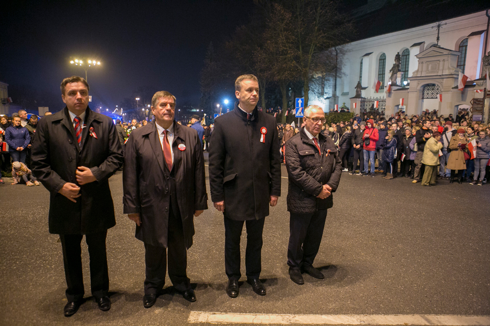Piotrkowskie obchody Święta Niepodległości rozpoczęła msza święta za Ojczyznę odprawiana tradycyjnie w kościele oo. Bernardynów. Po niej, przed pomnikiem Grobu Nieznanego Żołnierza, prezydent miasta Krzysztof Chojniak wygłosił okolicznościowe przemówienie, w którym mówił o niepodległościowych i legionowych tradycjach naszego miasta. – Nie byłoby wolnej Ojczyzny bez walki, bez ran i krwi zwykłego żołnierza. W tej walce swój znaczący udział miało także nasze miasto. Piotrków stał się bowiem bazą ważnych instytucji niepodległościowych – mówił prezydent i podkreślił. – Niech zawsze na dźwięk słowa Polska, nasze serca biją w jednym rytmie, a drogi którymi podążamy, nawet jeśli będą różne, niech prowadzą do tego samego celu – pomyślności Rzeczypospolitej. Tej pomyślności z okazji dzisiejszego święta państwu życzę. Wszystkiego najlepszego! Dla Polski! Dla Polaków!