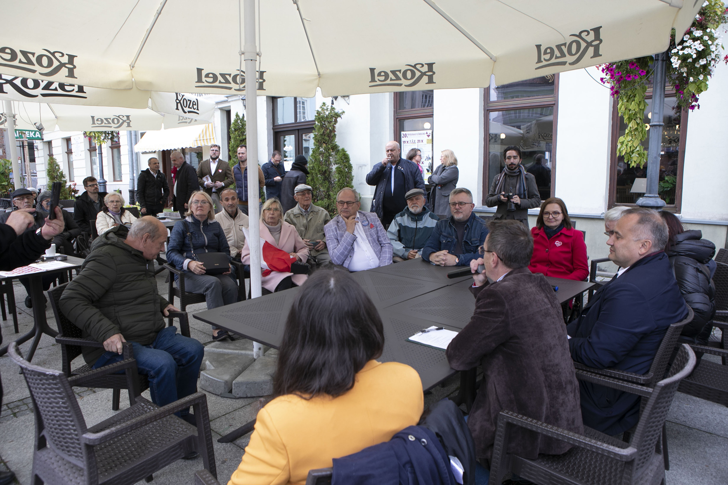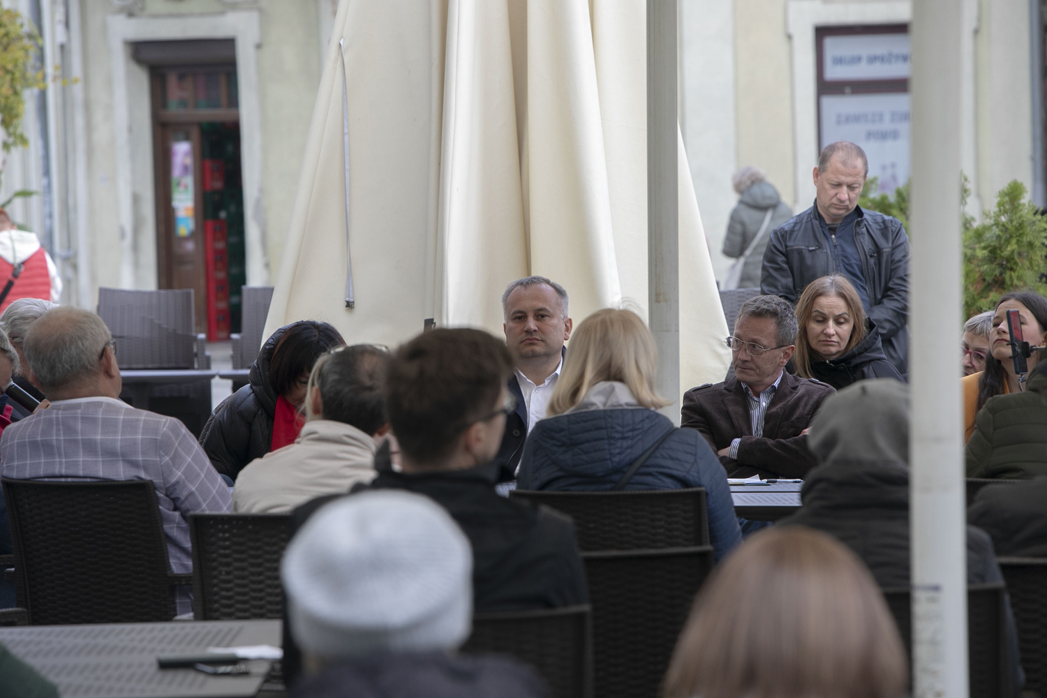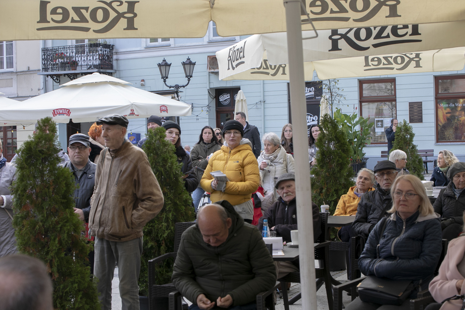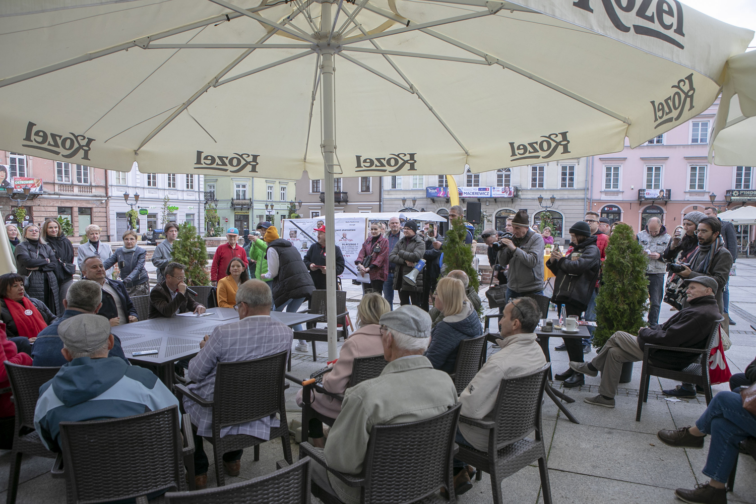 Pomimo chłodu, na Rynku Trybunalskim zgromadziła się spora grupka osób. Mieszkańcy, zadawali kandydatom pytania dotyczące oceny 20-letniej prezydentury Krzysztofa Chojniaka, swoich zasług na rzecz rozwoju miasta, obronności kraju, czy rozdziału państwa od kościoła oraz aborcji i praw kobiet. Jeden z mieszkańców dopytywał także, dlaczego na spotkanie nie zaproszono kandydatów Konfederacji i PiS.