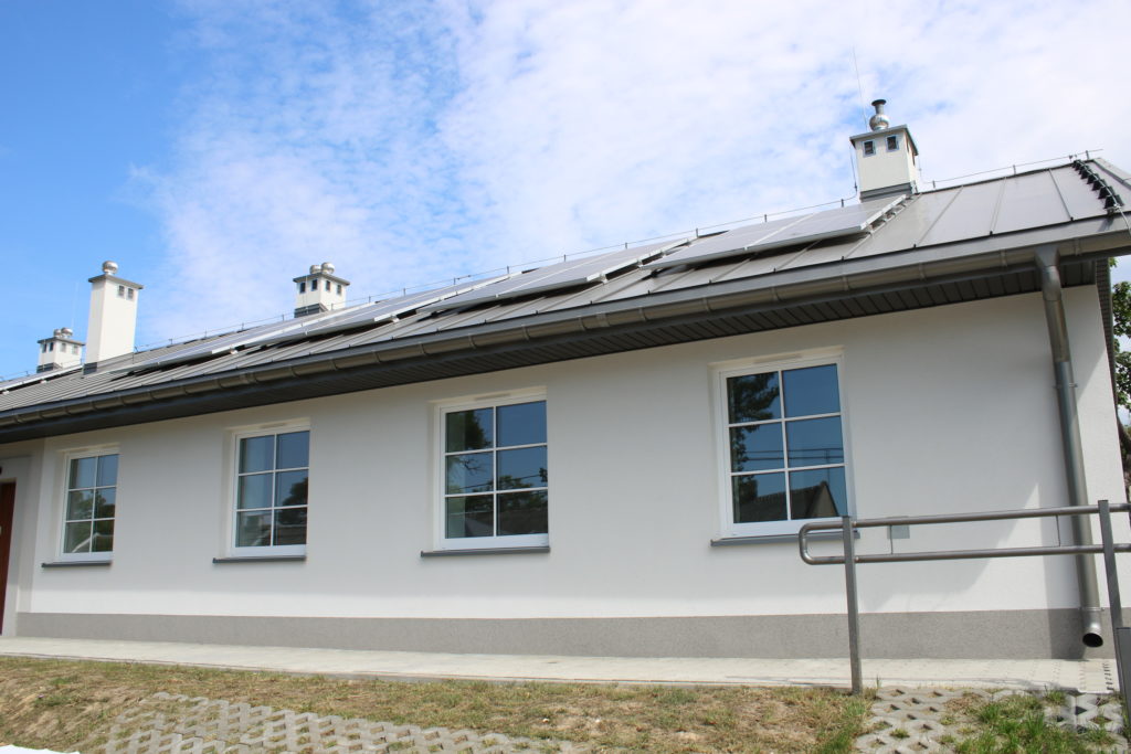 Obiekt prezentuje się bardzo okazale. Biała elewacje, energooszczędne wyposażenie, podłogowe ogrzewanie, słoneczne panele fotowoltaiczne do ogrzewania wody. Cały teren jest ogrodzony a przed budynkiem znajduje się także obiekt integracji mieszkańców w postaci zadaszonej altany.