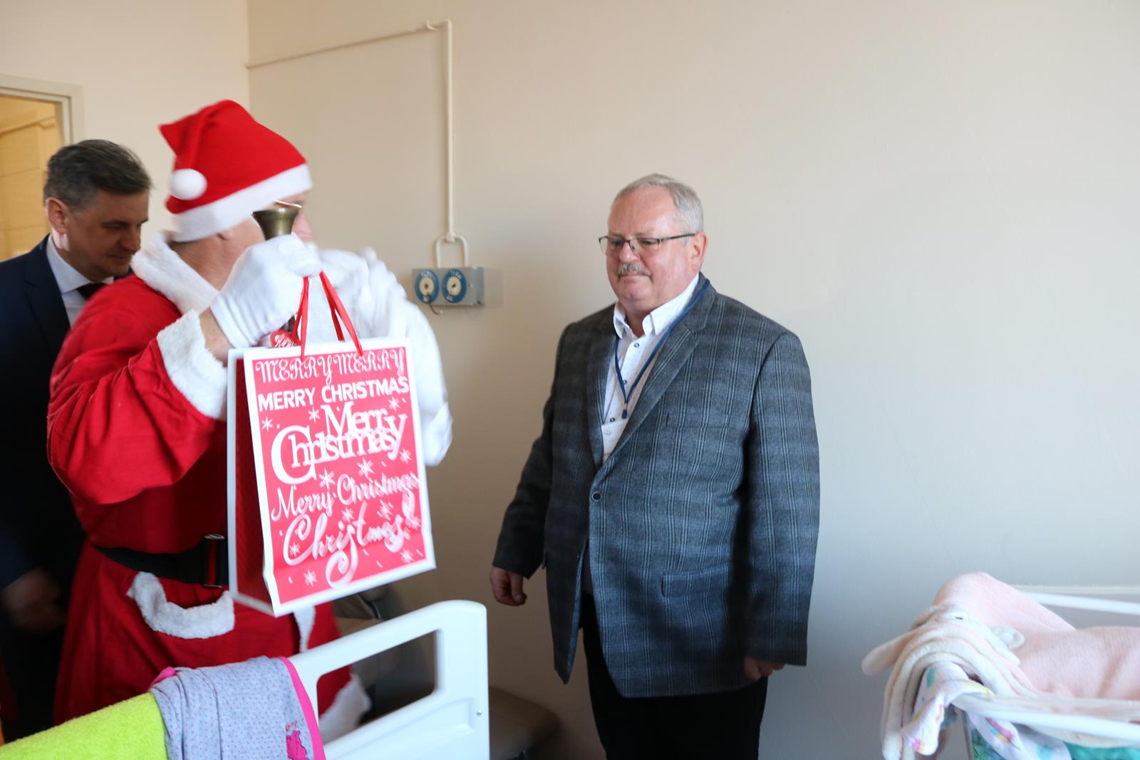 Najmłodszych pacjentów Powiatowego Centrum Matki i Dziecka w Piotrkowie Trybunalskim w czwartek odwiedził Mikołaj. Święty, przy znacznej pomocy elfów a także dyrektora szpitala i wicestarosty powiatu, obdarowali najmłodszych drobnymi upominkami.