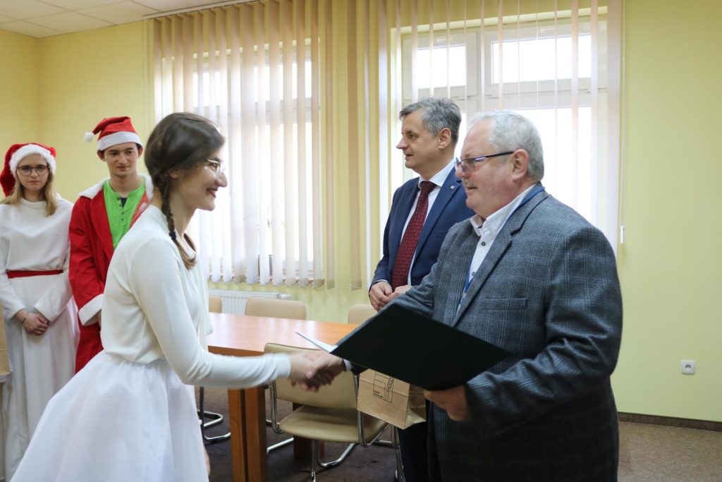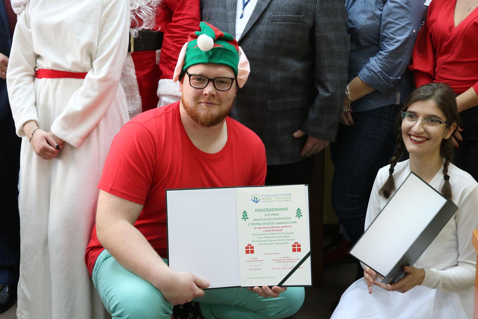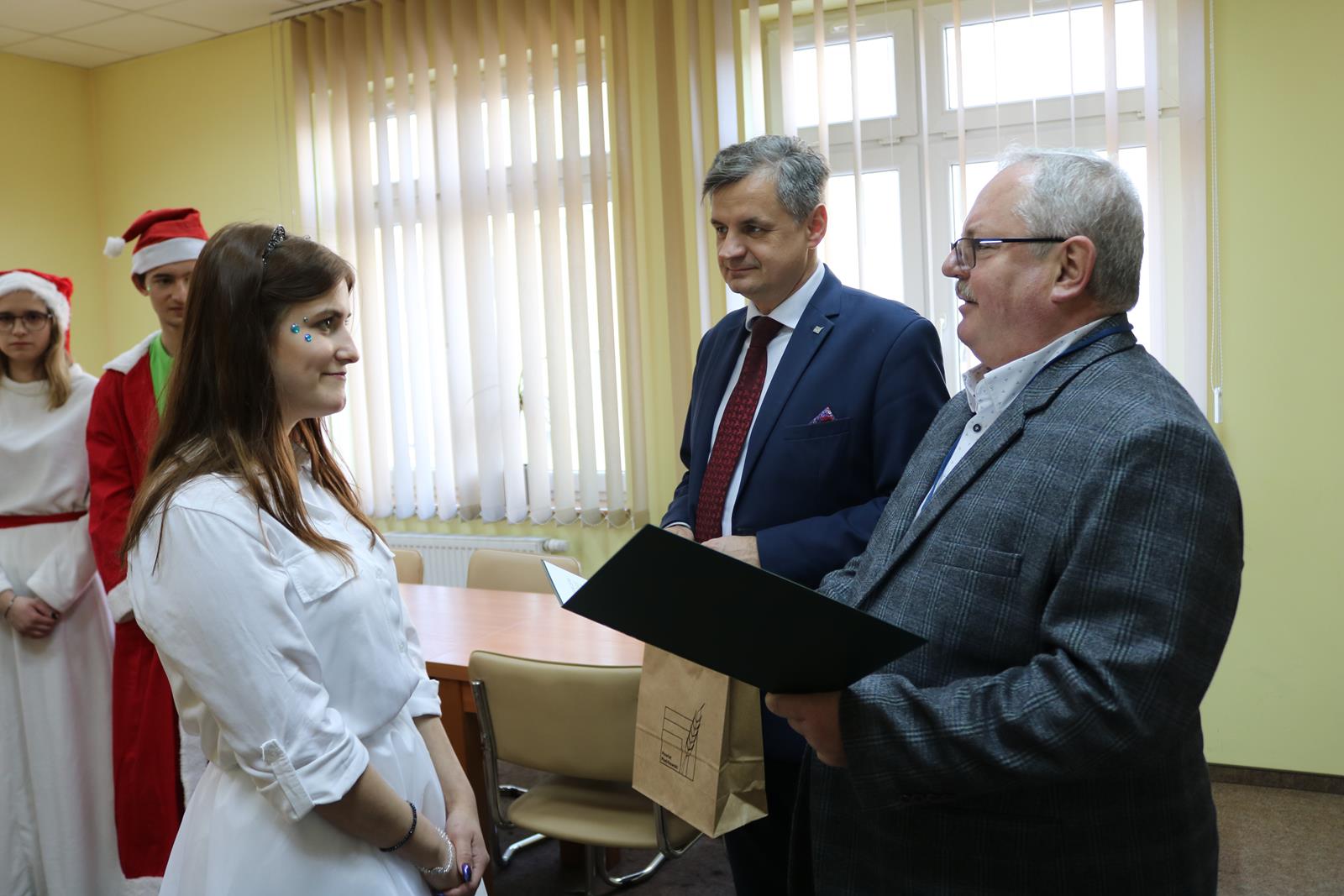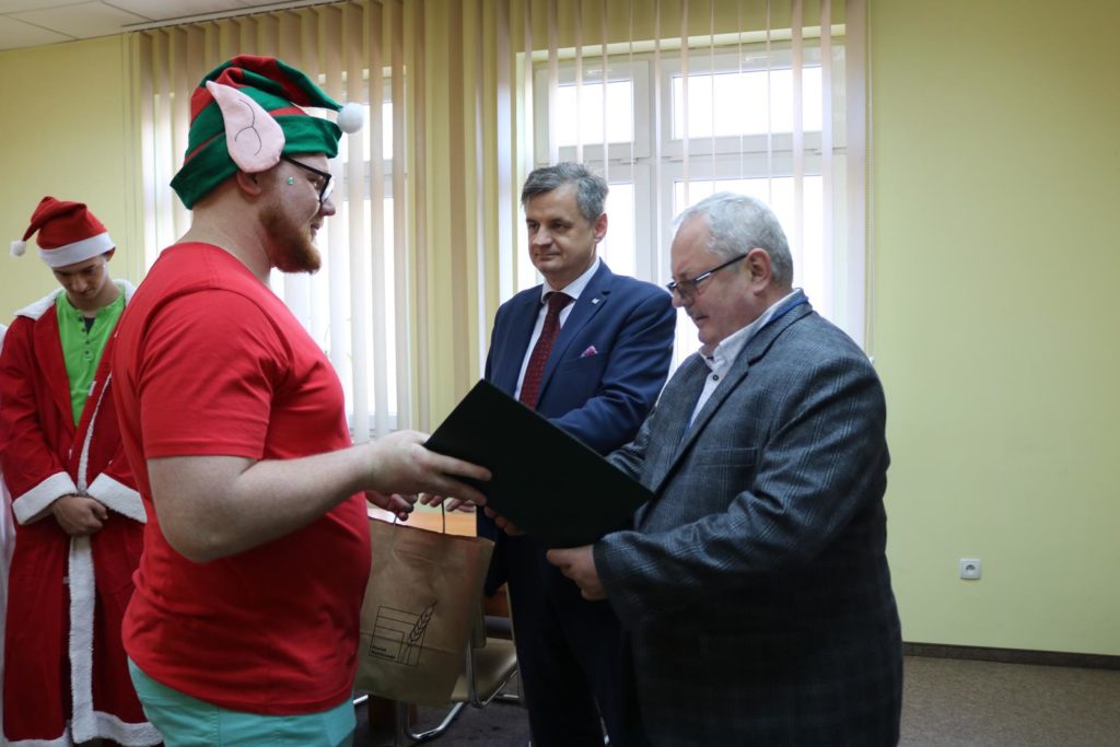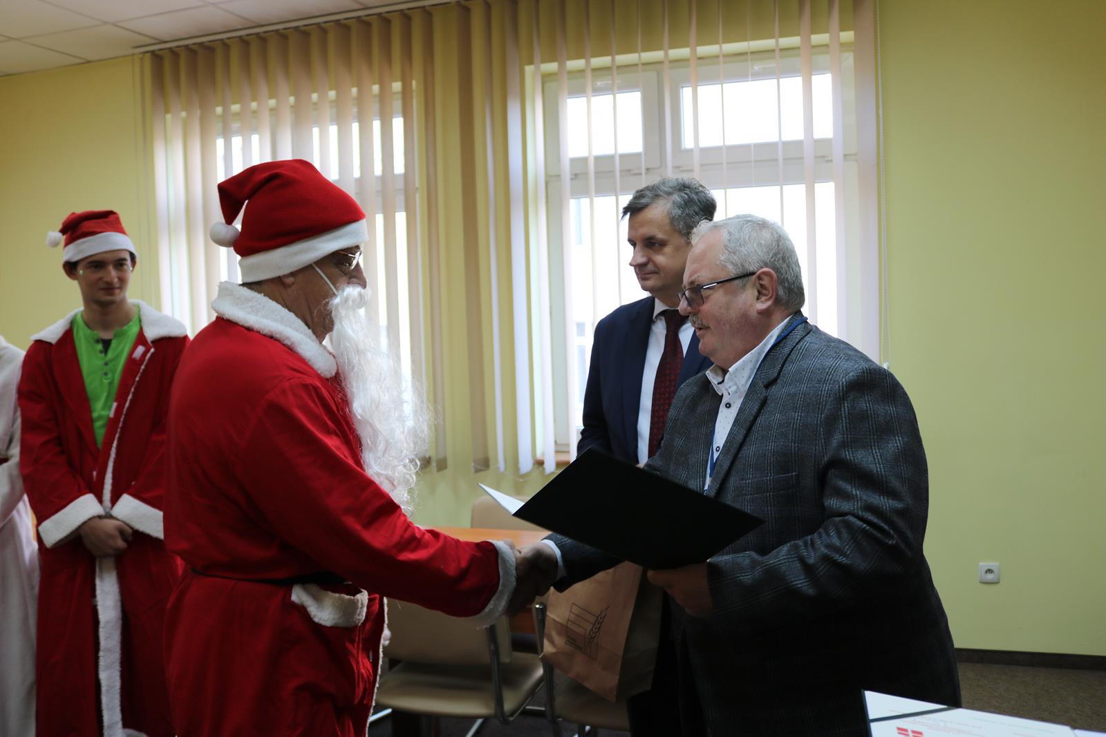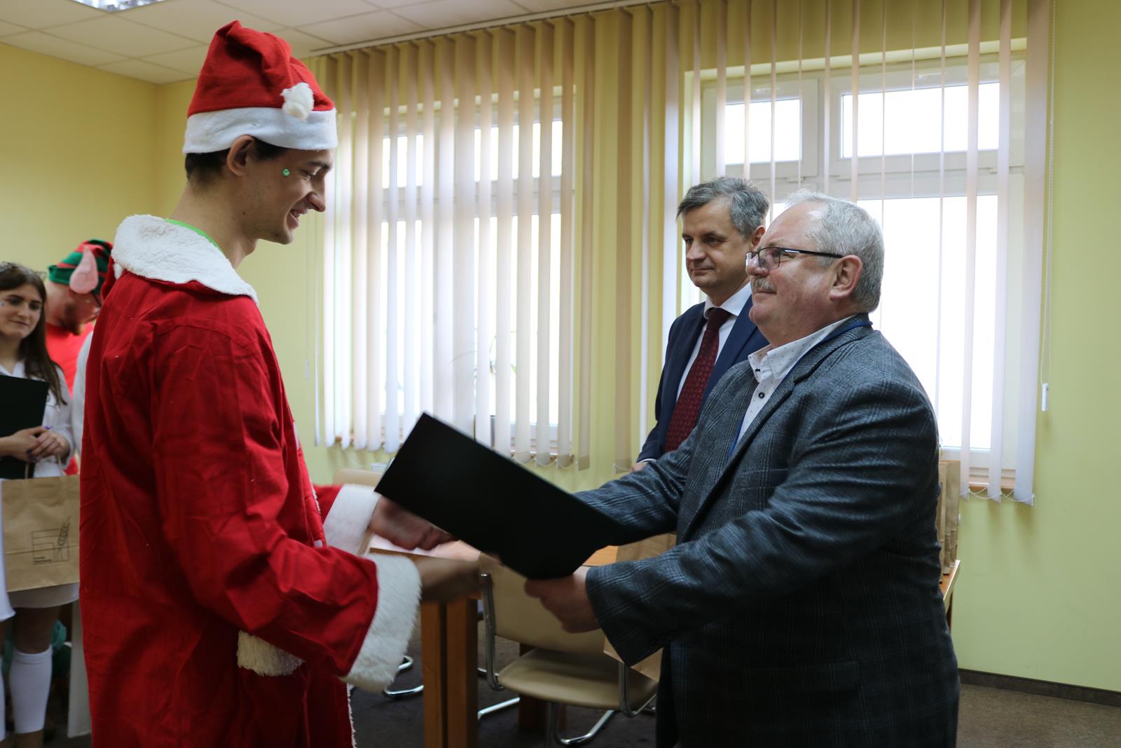 W zabawie uczestniczyli: Wicestarosta Powiatu Piotrkowskiego: Dariusz Magacz, p.o. dyrektora placówki: prof. Piotr Woźniak wraz z pracownikami Szpitala, którzy dołączyli się do mikołajkowych życzeń dla naszych najmłodszych pacjentów.