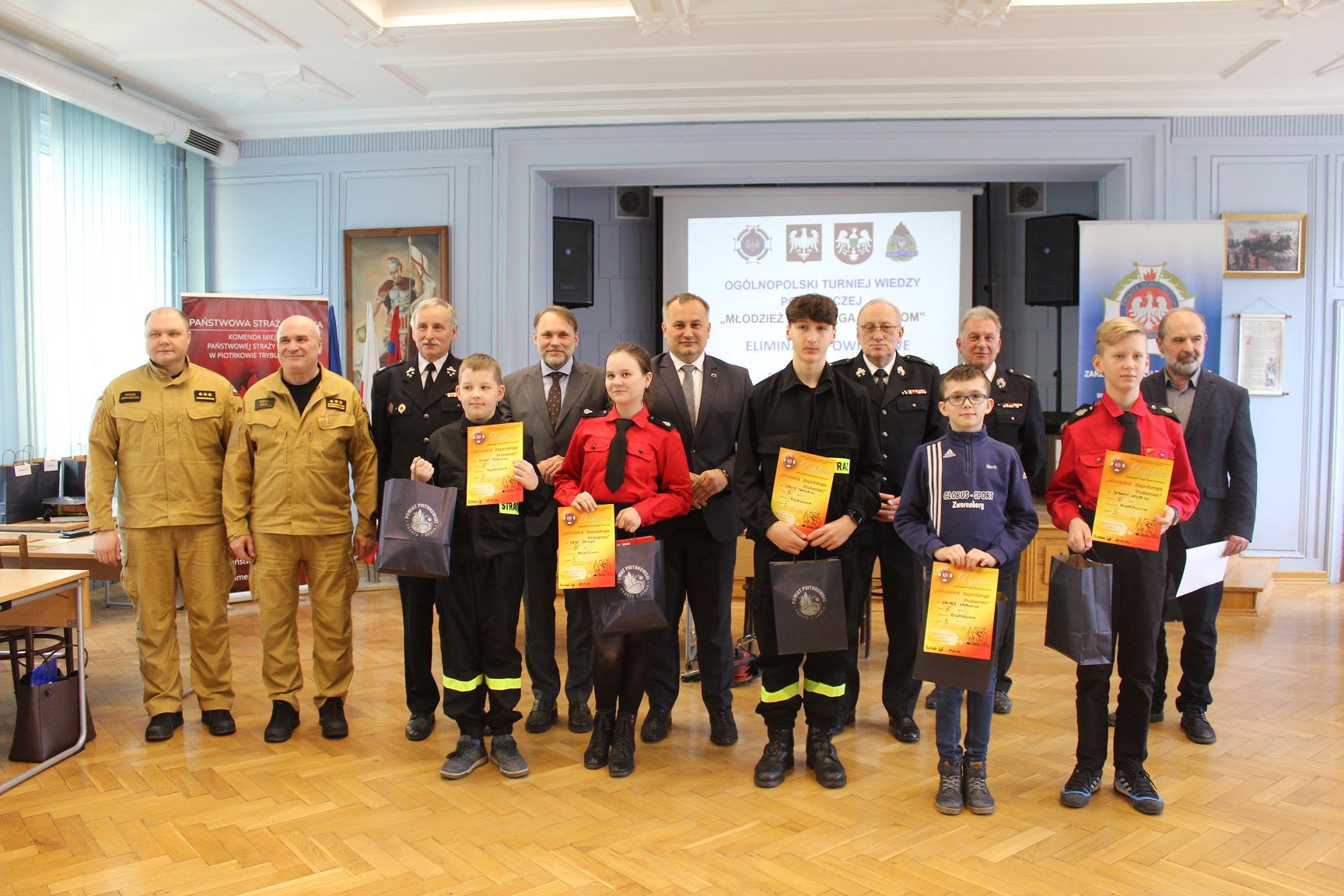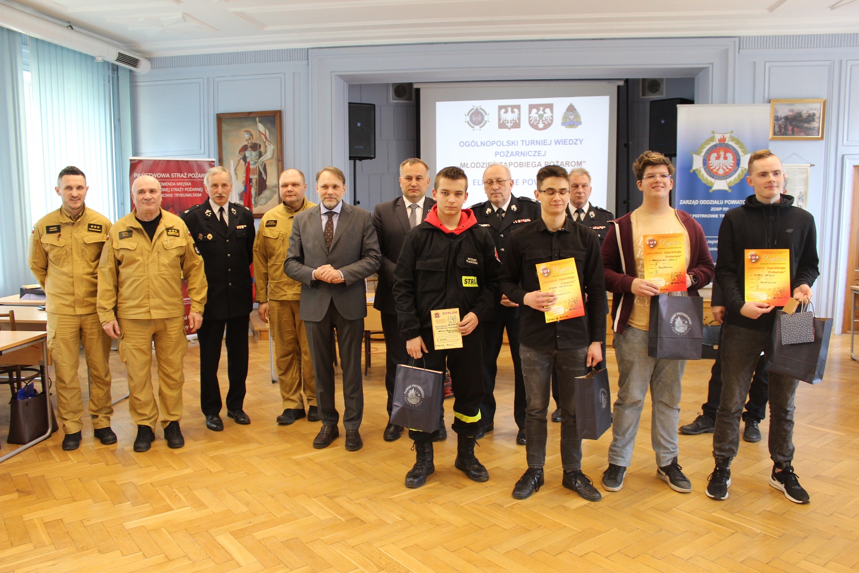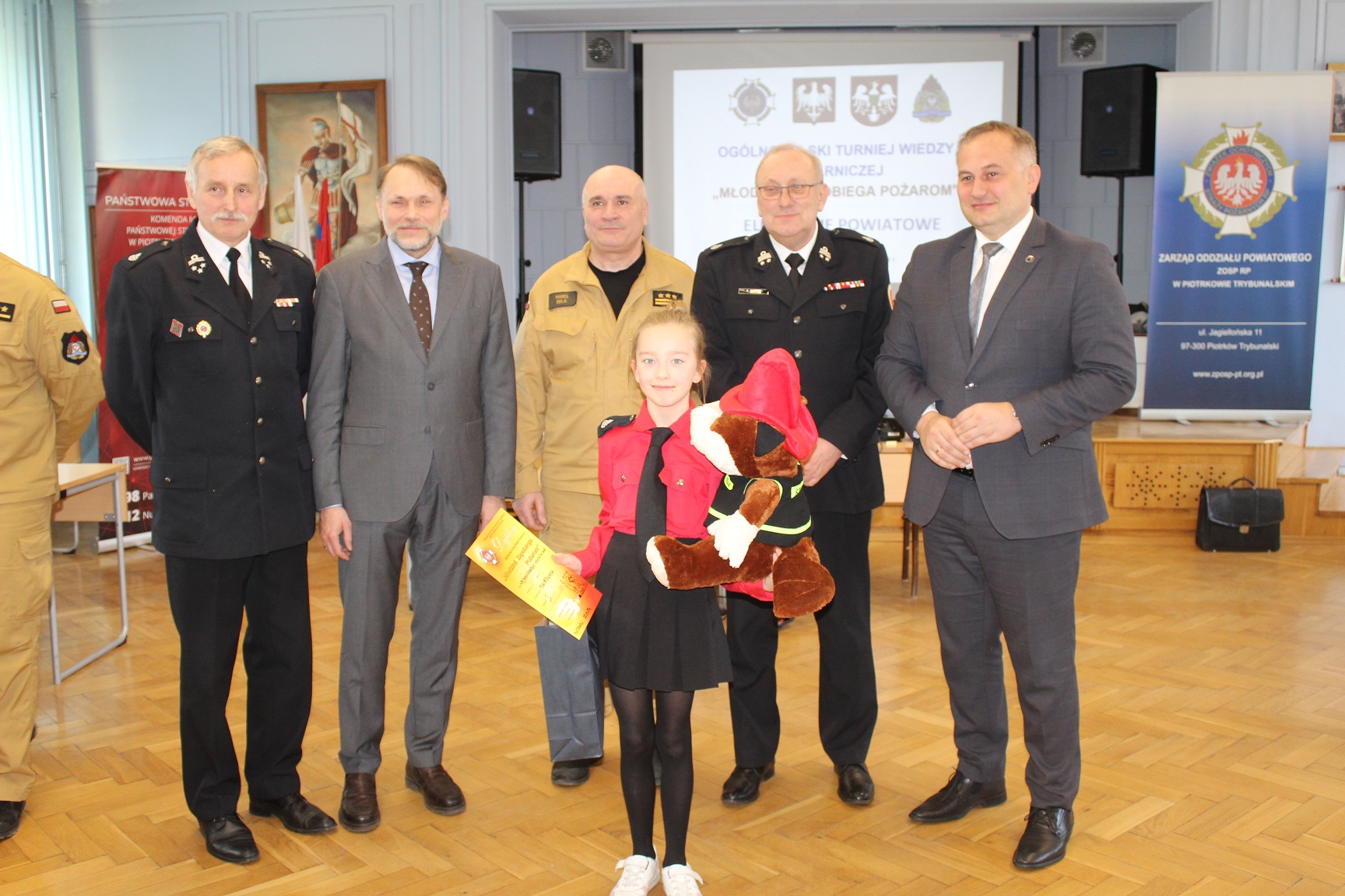Wręczenia nagród i dyplomów dla finalistów konkursu dokonali: starosta Piotr Wojtysiak, poseł na Sejm Grzegorz Lorek, Komendant Miejski PSP w Piotrkowie Trybunalskim st. bryg. Paweł Dela, Prezes Zarządu Oddziału Wojewódzkiego Związku OSP RP woj. Łódzkiego nadbrygadier w st. spoczynku Tadeusz Karcz.