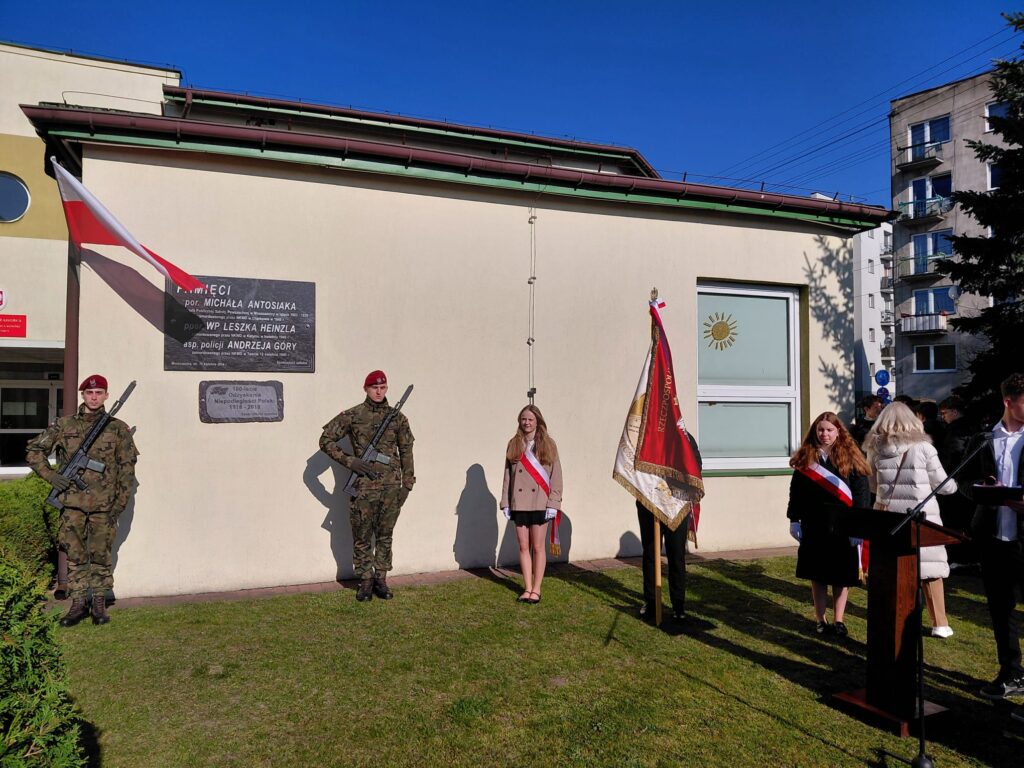 Obchody rozpoczęły się przed budynkiem szkoły, przy tablicy pamiątkowej poświęconej ofiarom zbrodni katyńskiej z terenu gminy Moszczenica: por. Michałowi Antosiakowi, ppor. WP Leszekkowi Heinzlowi oraz asp. policji Andrzejowi Górze. W uroczystości uczestniczyli przedstawiciele władz samorządowych – Wójt Gminy Moszczenica Dariusz Magacz oraz Przewodnicząca Rady Gminy Moszczenica Iwona Jarosińska wraz z radnymi, zaproszeni goście, w tym rodziny ofiar z 1940 roku, a także uczniowie i nauczyciele.