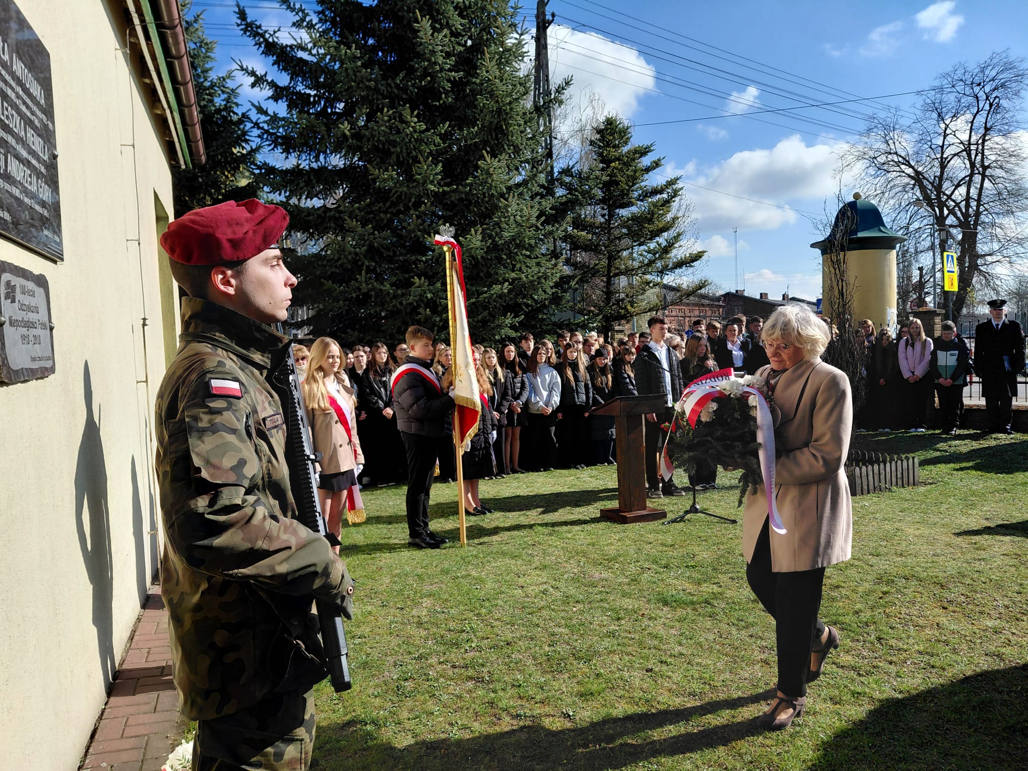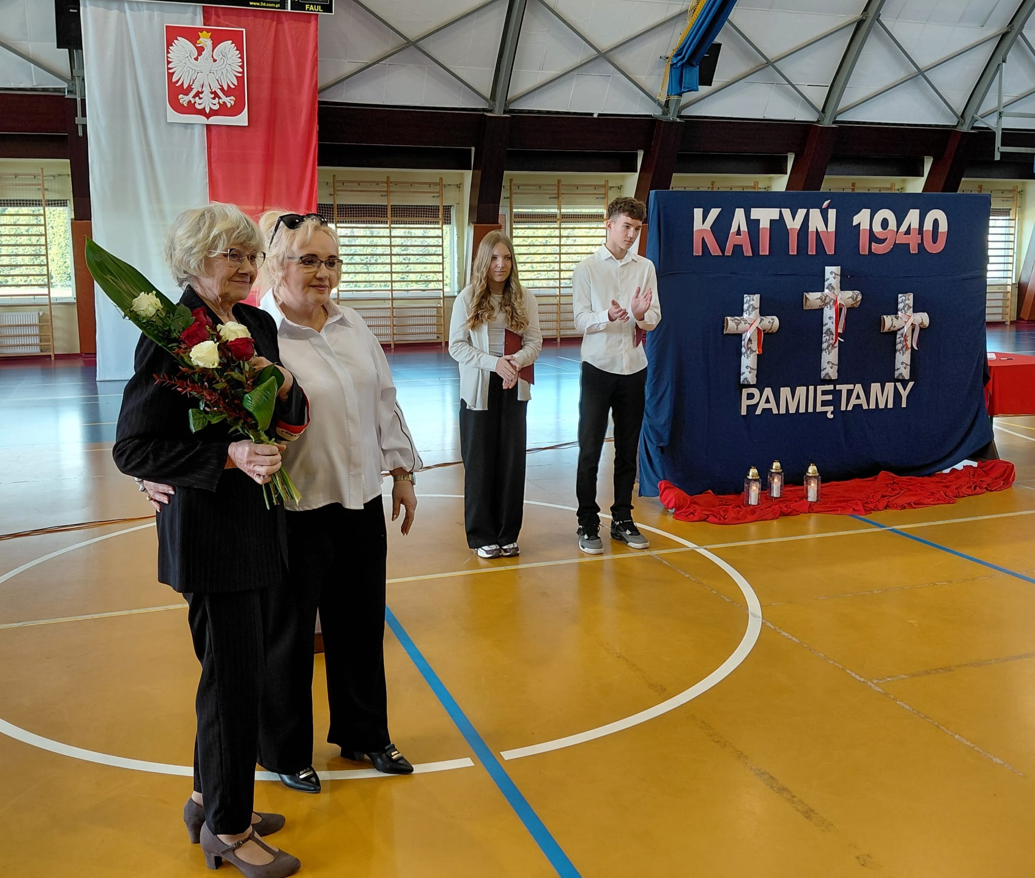 Druga część obchodów odbyła się wewnątrz szkoły. Głos zabrała Irena Heinzel, przedstawicielka Rodzin Katyńskich, która poruszyła temat tragicznych losów Polaków zamordowanych w Katyniu, nawiązała również do katastrofy smoleńskiej oraz historii wielokrotnej walk narodu polskiego o niepodległość.