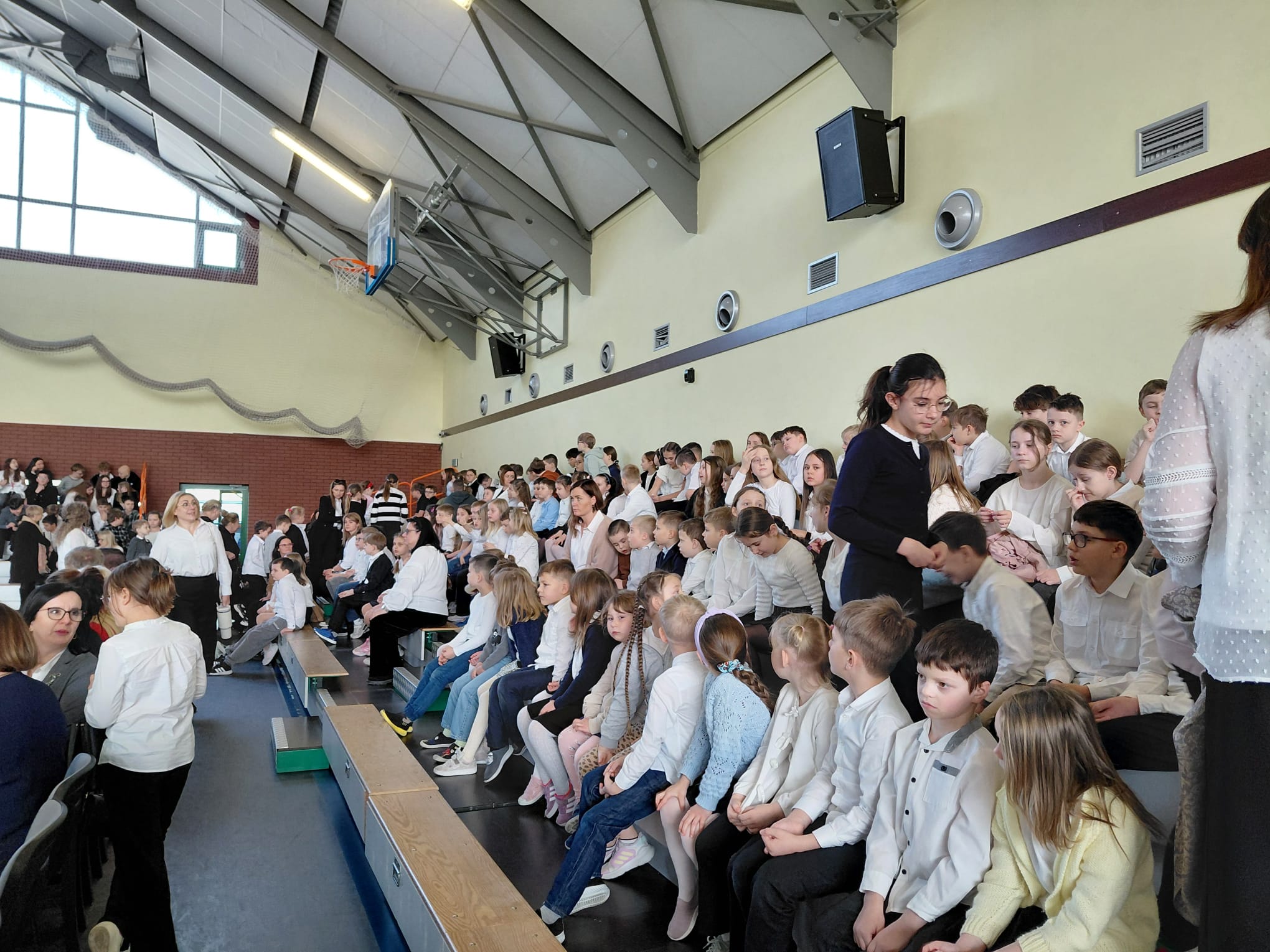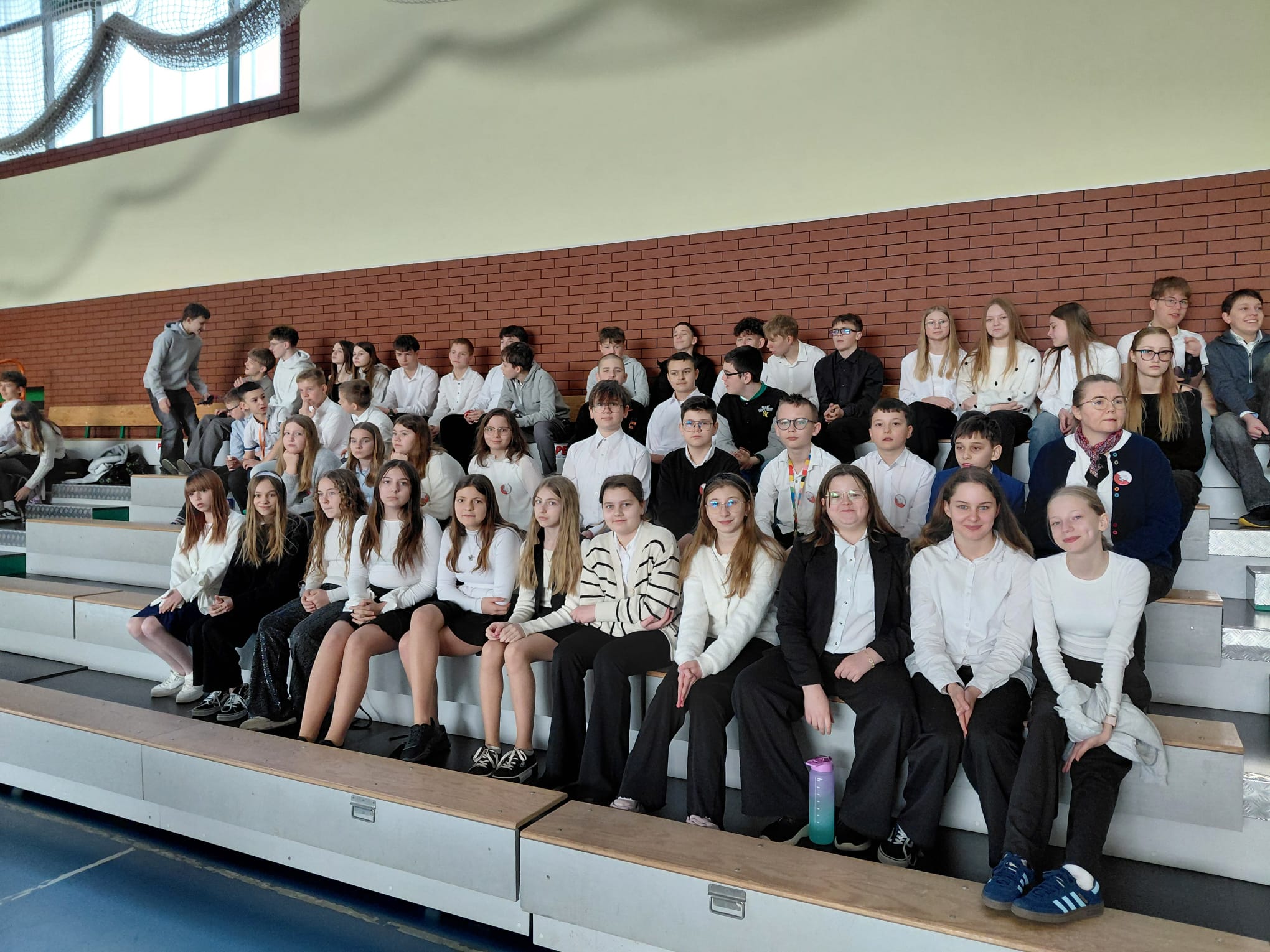 Uczniowie klasy VII zaprezentowali wzruszającą część artystyczną o charakterze słowno-muzycznym, inspirowaną słowami Adama Mickiewicza: „Bo jeśli zapomnę o nich… Ty, Boże na niebie, zapomnij o mnie.”