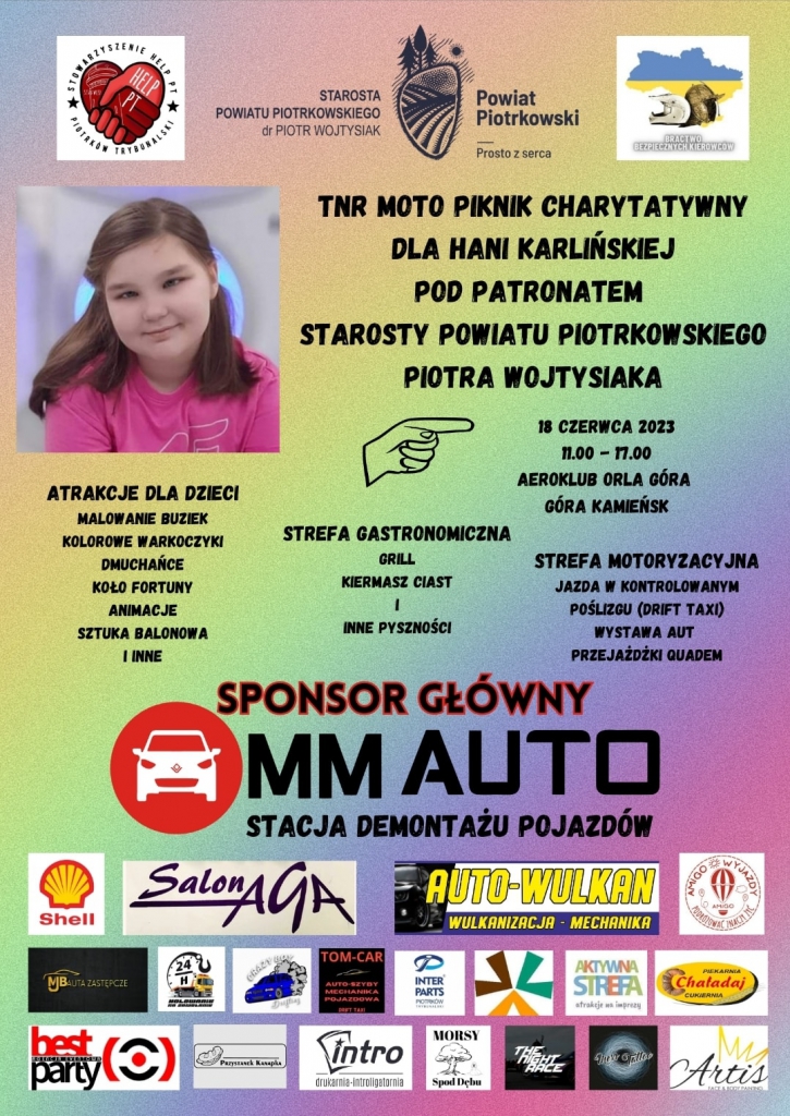 Hania to 9 – letnia mieszkanka Gminy Gorzkowice. Niespodziewanie zaatakował ją guz mózgu, dlatego też bardzo potrzebuje pomocy. 18 czerwca pomiędzy 11:00 a 17:00 na Górze Kamieńsk odbędzie się charytatywny motopiknik dla chorej mieszkanki powiatu piotrkowskiego. Imprezę swoim patronatem objął starosta Piotr Wojtysiak. W programie mnóstwo atrakcji dla dzieci, strefa motoryzacyjna a także smaczne jedzenie w strefie gastro.
