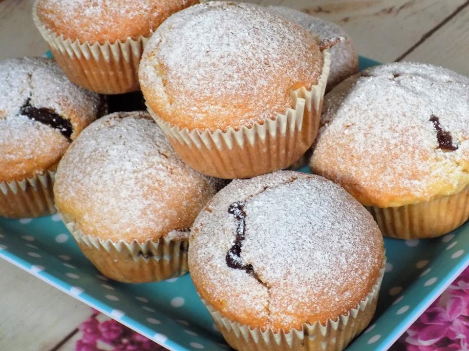 Jajka ucieramy z cukrami na puszysty kogel. Następnie dodajemy przesianą mąkę z proszkiem do pieczenia, olej i wolno miksujemy lub mieszamy łyżką. Do foremek na muffinki (papilotek umieszczonych w blaszce) wykładamy po łyżce ciasta, następnie około łyżeczki konfitury. Wypełniamy ponowie ciastem do ok 1/3 wysokości foremek. Pieczemy w 180 st. C ok. 25 – 30 minut.