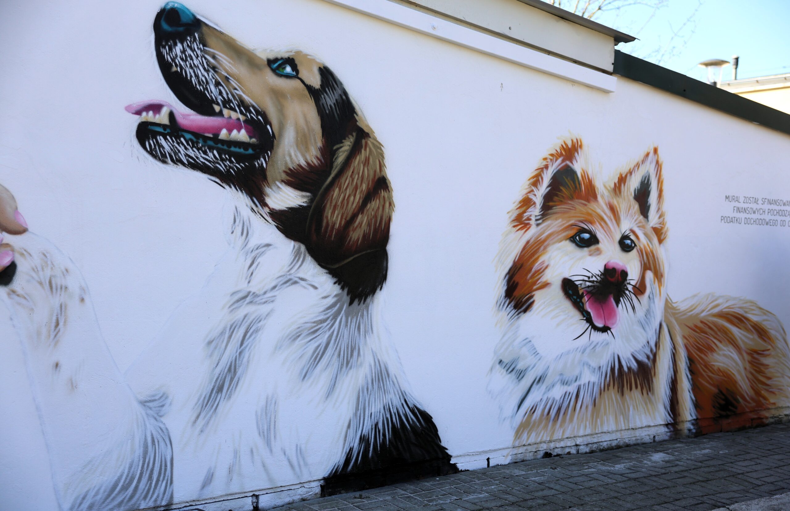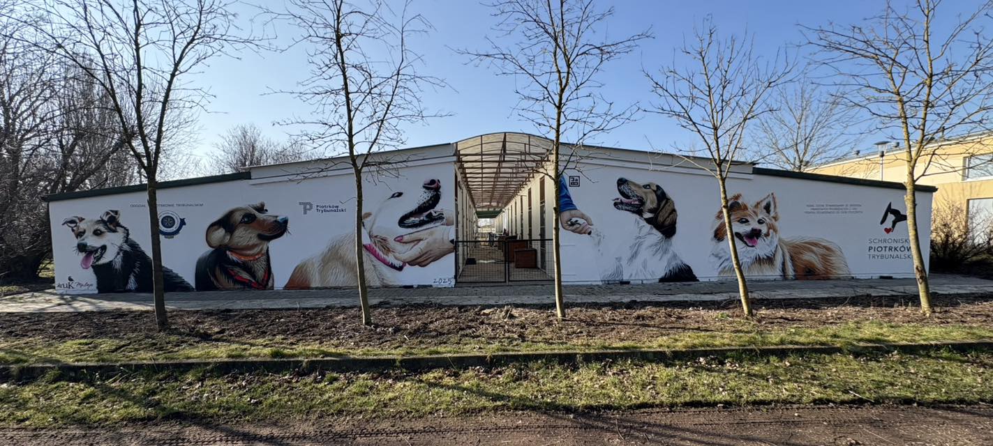 W Światowy Dzień Bezdomnych Zwierząt pracownicy piotrkowskiego schroniska odsłonili barwny mural, który ozdobił ścianę dwóch budynków. Mural powstał z ich inicjatywy, a jego realizacja była możliwa dzięki wpływom z 1,5 proc. podatku. Kolorowe dzieło sztuki stworzył Adam Wirski, pseudonim KruK Maluje.