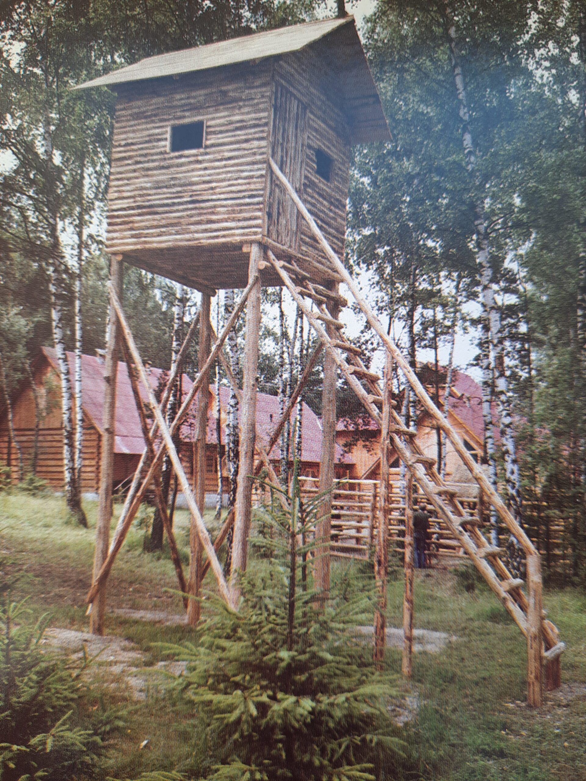 Obiekt choć położony z dala od centrum miasta, na skraju lasu na Wierzejach, przy drodze prowadzącej do Koła i nad Zalew Sulejowski, zwracał uwagę oryginalną bryłą architektoniczną – surowymi, acz z finezją scalonymi balami sosnowymi, przetkanymi wiórowymi warkoczami, nad którymi górowały strzeliste dachy. Kilka połączonych z sobą w całość typowych domów góralskich tworzyło kompleks, który zaprojektował zespół Biura Projektów Łódź-Śródmieście pod kierunkiem inż. architekta Andrzeja Owczarka. Inicjatywę o budowie w związku z Centralnymi Dożynkami, których w 1979 roku gospodarzem był Piotrków, podjął Zarząd Wojewódzki Polskiego Związku Łowieckiego. Prace budowlane w 67 dni wykonali wynajęci cieśle z Bukowiny Tatrzańskiej. Na czas pamiętnych Dożynek obiekt otrzymał miano „Domu myśliwego i leśnika”. W dożynkowe dni w jego wnętrzach prezentowano wystawę poświęconą osiągnięciom ówczesnego łowiectwa, wędkarstwa, przemysłu drzewnego i leśnictwa, a także urządzenia i sprzęt ułatwiające prace w lesie i ochronę naturalnego środowiska. Później przez parę miesięcy „Dom myśliwego i leśnika” stał pusty. Planowano urządzić tu ośrodek szkoleniowy, pojawiły się głosy o siedzibie dla kolejnego miejskiego przedszkola, Wojewódzka Rada Łowiecka w Piotrkowie sugerowała by wzorem wystaw łowieckich zorganizowanych w 1978 roku w Lesznie i Olsztynie urządzić podobną, tyle tylko, że stałą właśnie w naszym mieście. Jedni pomysłom przyklaskiwali, inni utyskiwali, aż wreszcie przeważyła propozycja łowczych.