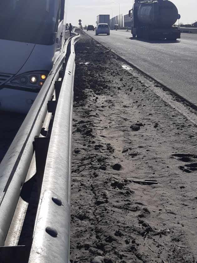 Autokarem przewożonych było kilkanaścioro dzieci w wieku 13-15 lat. Jechały one na kilkudniowy obóz sportowy w okolice Bydgoszczy. Kierowca twierdzi, że jeden z samochodów próbował wyprzedzać inne pojazdy, przez co stracił panowanie nad kierownicą, zjechał z betonowej drogi i po kilku metrach zatrzymał się na barierach oddzielających jezdnie. Na szczęście żadnemu z dzieci nic się nie stało.