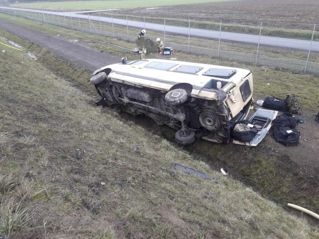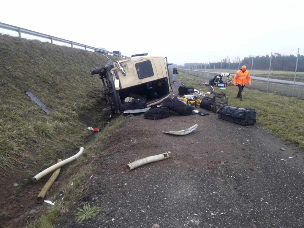 Bus którym jechało trzech żołnierzy wojsk specjalnych miał wypadek. Jeden z wojskowych został ciężko ranny. Po wystrzale opony kierowca stracił panowanie nad pojazdem, a auto którym jechali przebiło bariery energochłonne, stoczyło się do rowu i przewróciło się na bok. Do wypadku doszło w okolicach Adolfinowa na autostradzie A1 na pasie w kierunku Piotrkowa.
