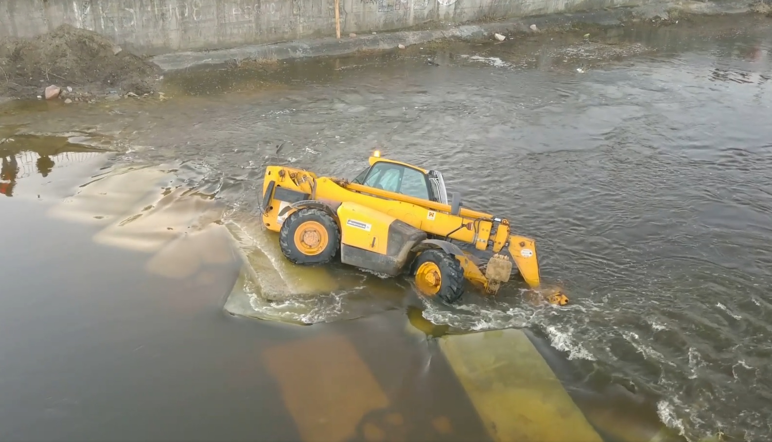 Jedna z maszyn wykorzystywana do budowy kładki nad Pilicą w Sulejowie, zatonęła we wtorek w rzece. Wszystko to prawdopodobnie przez wysoki stan Pilicy po ostatnich roztopach. Spowodował on namoknięcie usypanego podjazdu dla koperek, przygotowanego przez pracowników wykonujących kładkę. Gdy maszyna na niego najechała, zaczęła osuwać się do rzeki. Na szczęście operatorowi maszyny udało się bezpiecznie ją opuścić i nikomu nic się nie stało. Maszynę po kilku godzinach za pomocą dżwigu udało się wydostać z dna Pilicy.