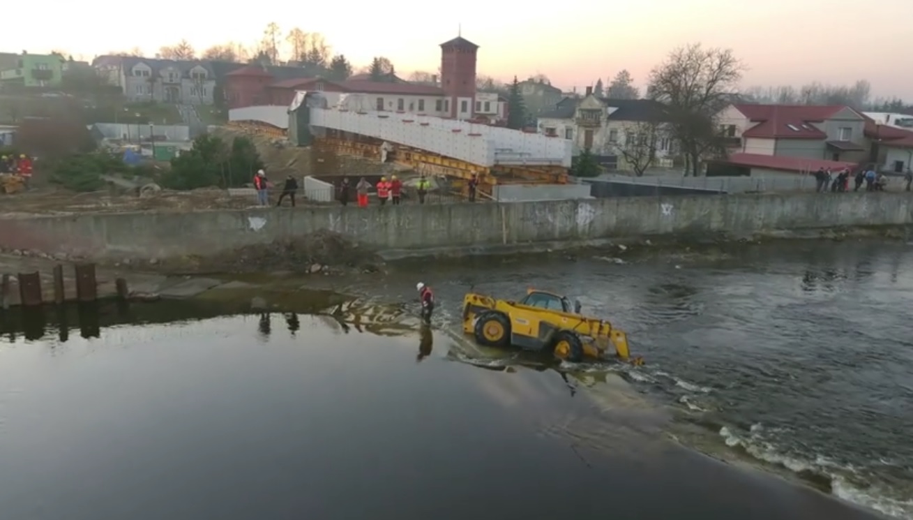 Jedna z maszyn wykorzystywana do budowy kładki nad Pilicą w Sulejowie, zatonęła we wtorek w rzece. Wszystko to prawdopodobnie przez wysoki stan Pilicy po ostatnich roztopach. Spowodował on namoknięcie usypanego podjazdu dla koperek, przygotowanego przez pracowników wykonujących kładkę. Gdy maszyna na niego najechała, zaczęła osuwać się do rzeki. Na szczęście operatorowi maszyny udało się bezpiecznie ją opuścić i nikomu nic się nie stało. Maszynę po kilku godzinach za pomocą dżwigu udało się wydostać z dna Pilicy.